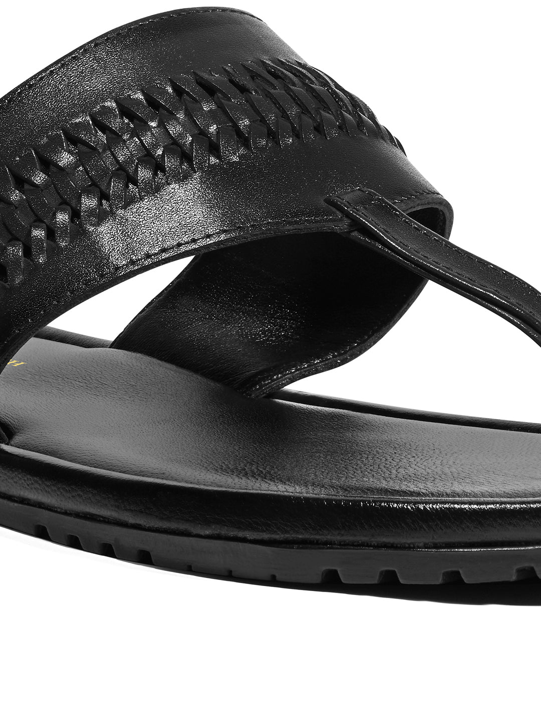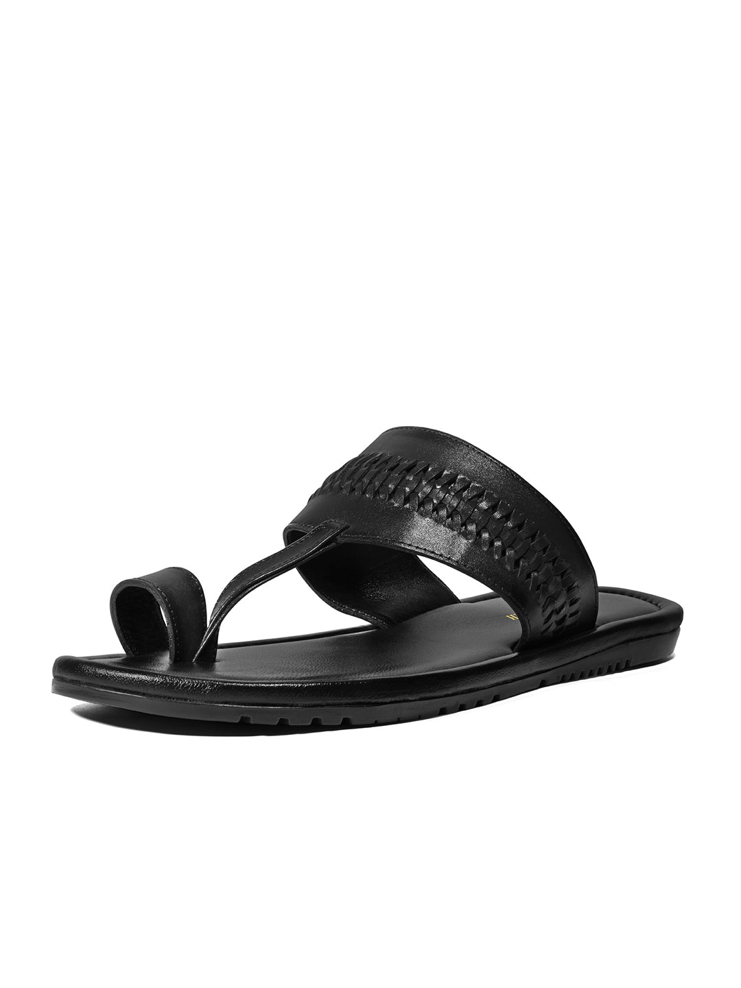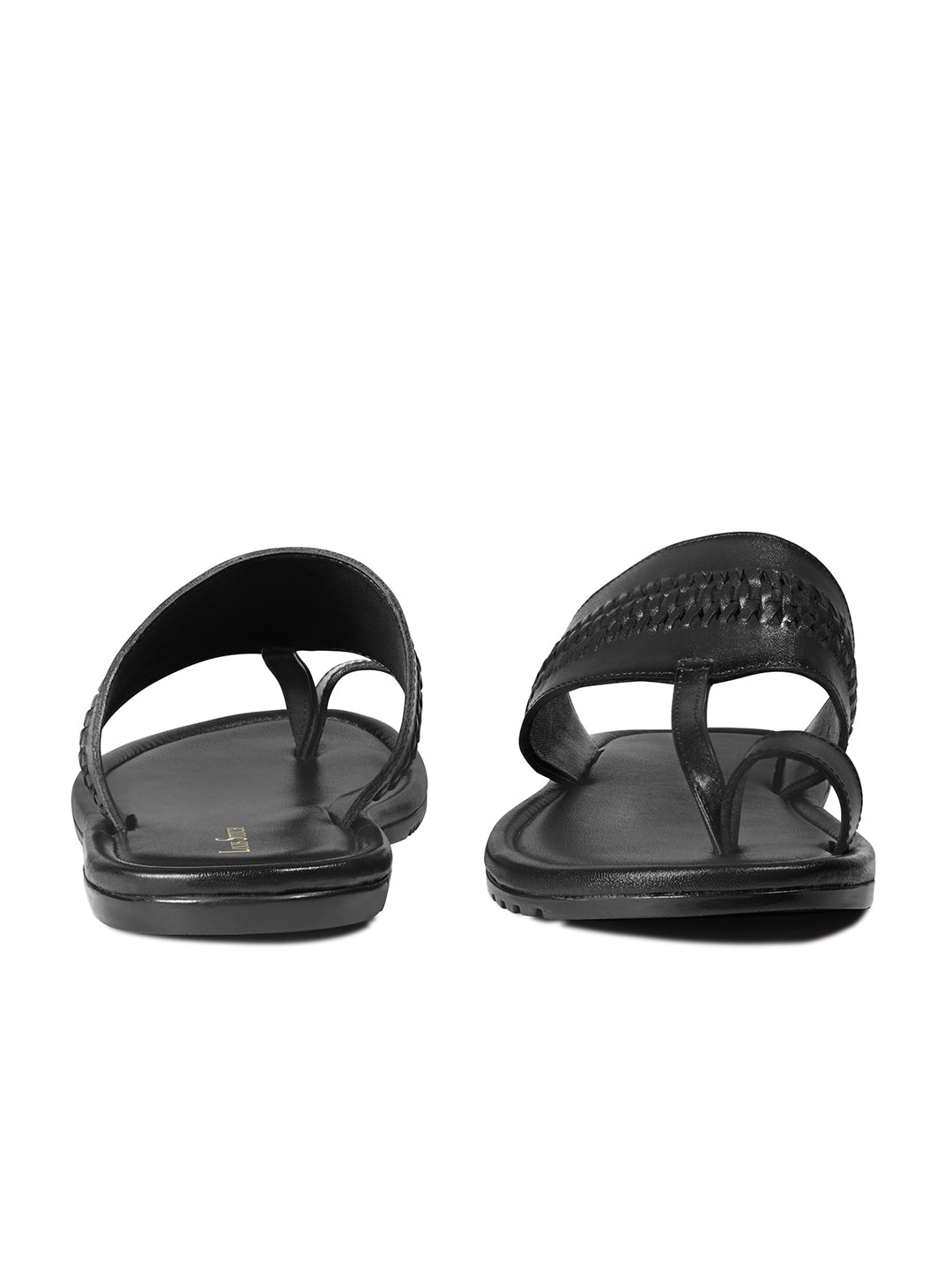 Black Kolhapuri Style Lightweight Toe Ring Leather Sandal
