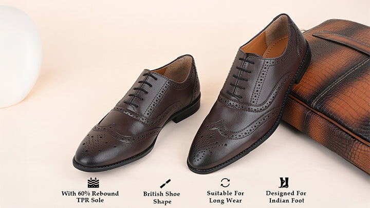 Brunette Brown Wingtip Brogue Style Comfortable Formal Lace Up Shoes
