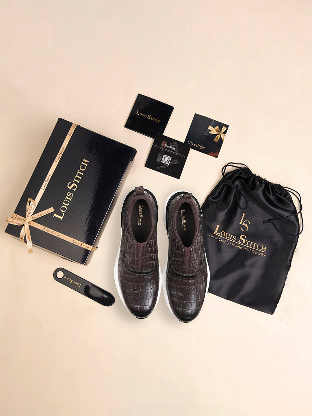 Package Include: Packed in LOUIS STITCH Signature Box, Royal Satin Shoe Bag, Shoe Horn, and Greeting card, Warranty card.