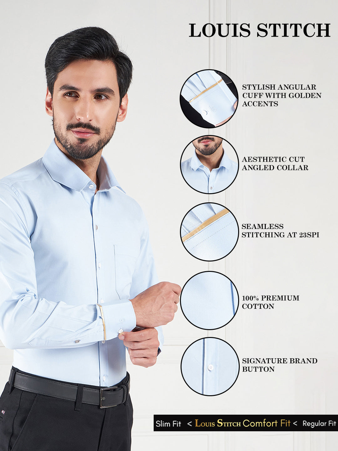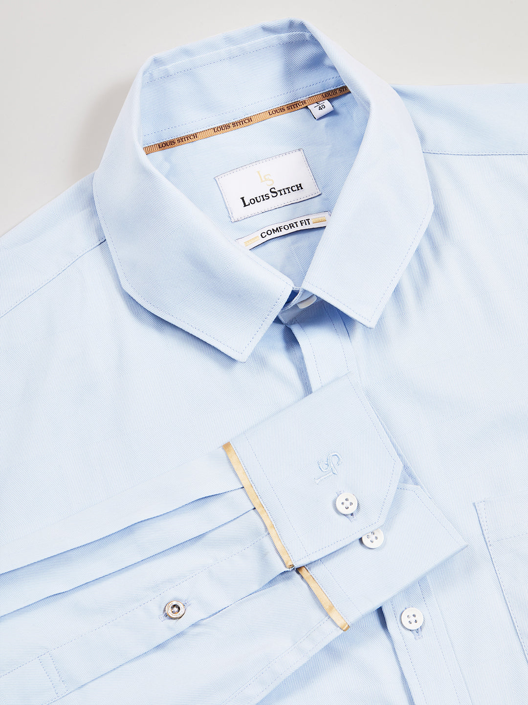 Designed for the connoisseur's, Louis Stitch formal shirts for men are the epitome of luxury and elegance. The shirts feature a Freudenberg collar, unique angled cuffs, and seamless stitching, along with German Gutermann threads for unmatched quality and durability. Meticulously Crafted from the finest handpicked Premium Cotton.