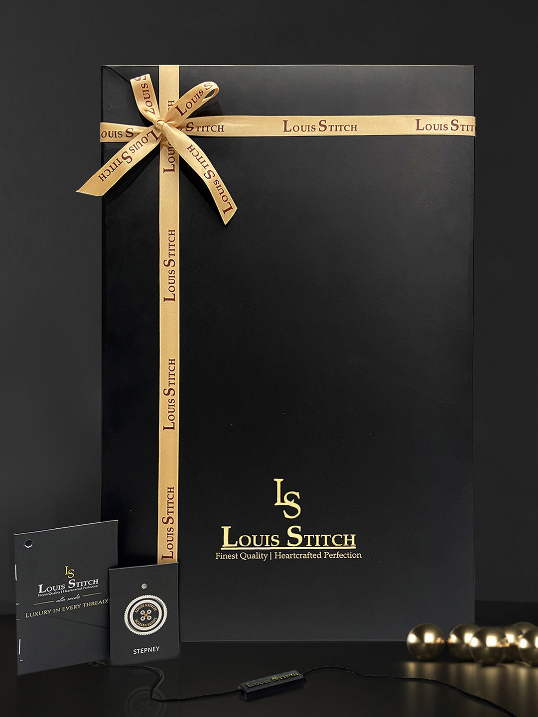 Louis Stitch's signature packaging, elegantly designed in Black, is wrapped with a refined golden and black ribbon. Please note, images are for representation purposes only