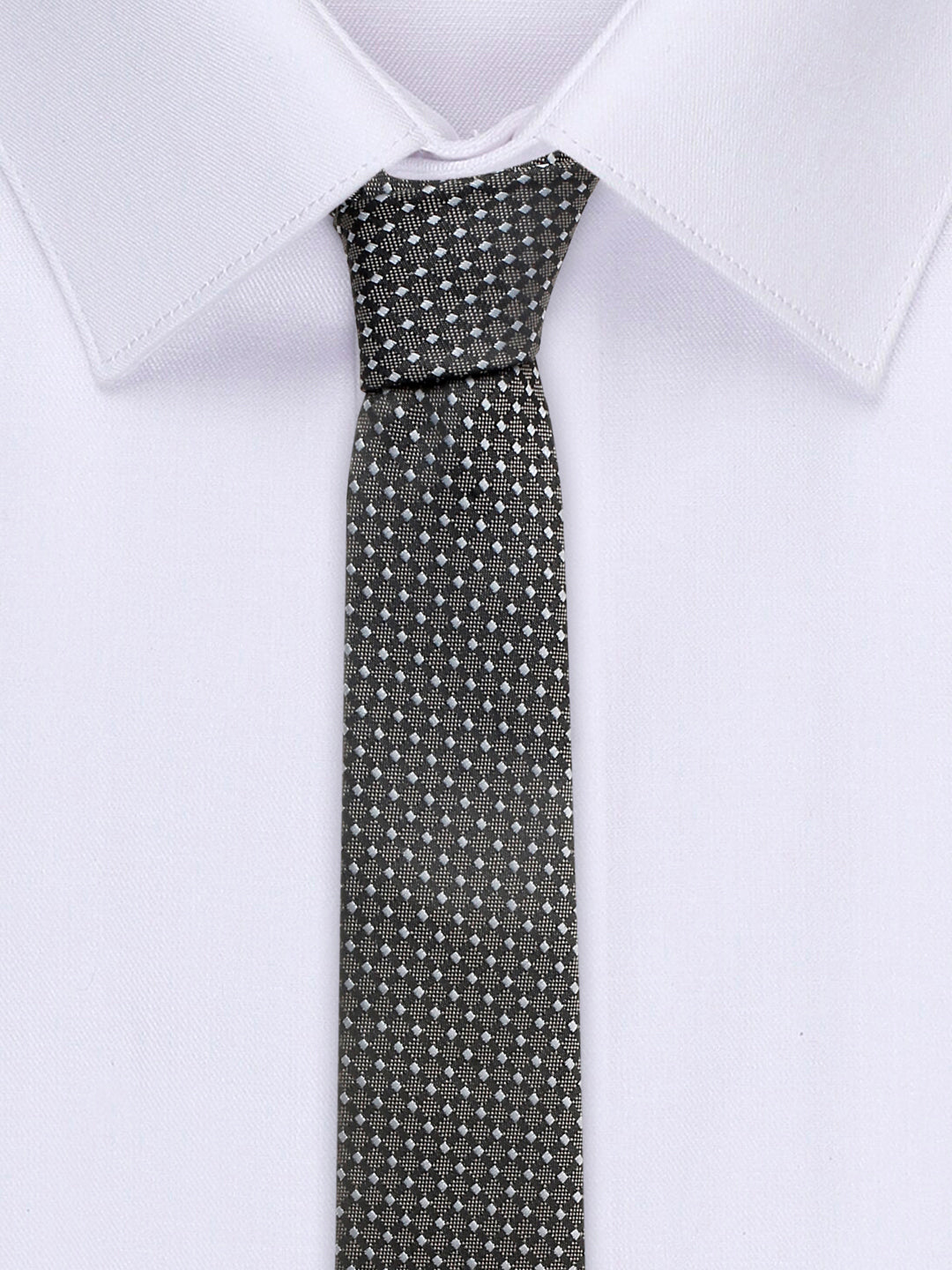 Dark Grey Luxury Italian Silk Necktie Set With Pocket Square Cufflinks Brooch Chrome Tie pin