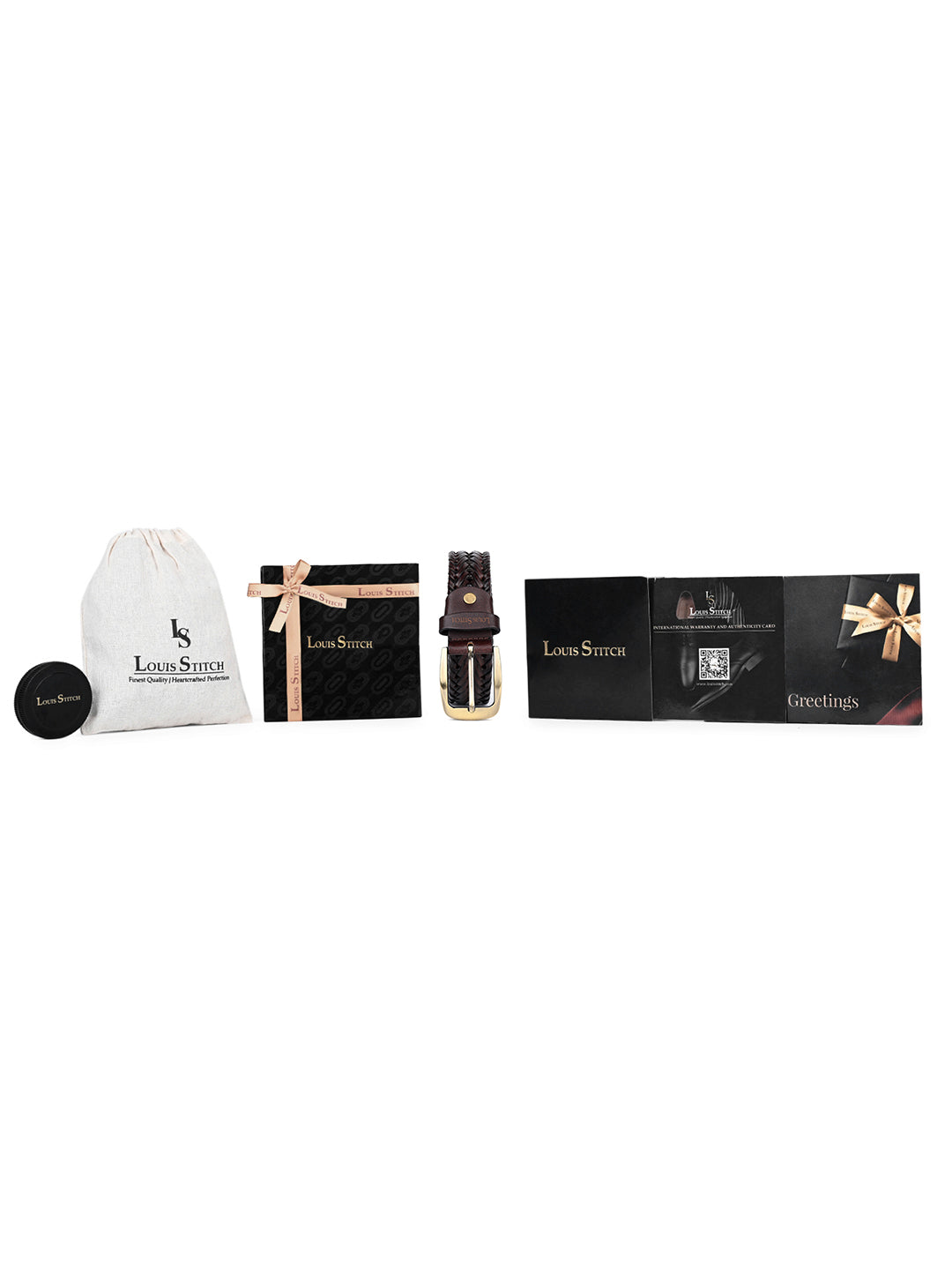 Gifting solution: Pamper your loved ones with this stylish belt. It comes in a LOUIS STITCH Signature Case, wrapped amazingly; the case includes a Belt Shiner, a Woven Bag, a Greeting card, a Warranty card, and a Loyalty card.