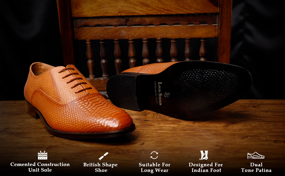 These Men's new-generation shoes are tough, durable and effortlessly stylish. These Derbys are beautifully handcrafted with all love and affection by 3rd generation artisans. Perfectly finished with the finest creams from the world, gently polished by the softest cloth, and packed like delicate muffins in the box. These are effortlessly stylish yet durable and strong. Adored and respected by stylish men across the world and are synonymous with luxury and elegance. Every shoe is hand-crafted only from Italian Tier-1 Leather which is known for its durability, elegance and shine can be easily recognized by onlookers as a LOUIS STITCH product.