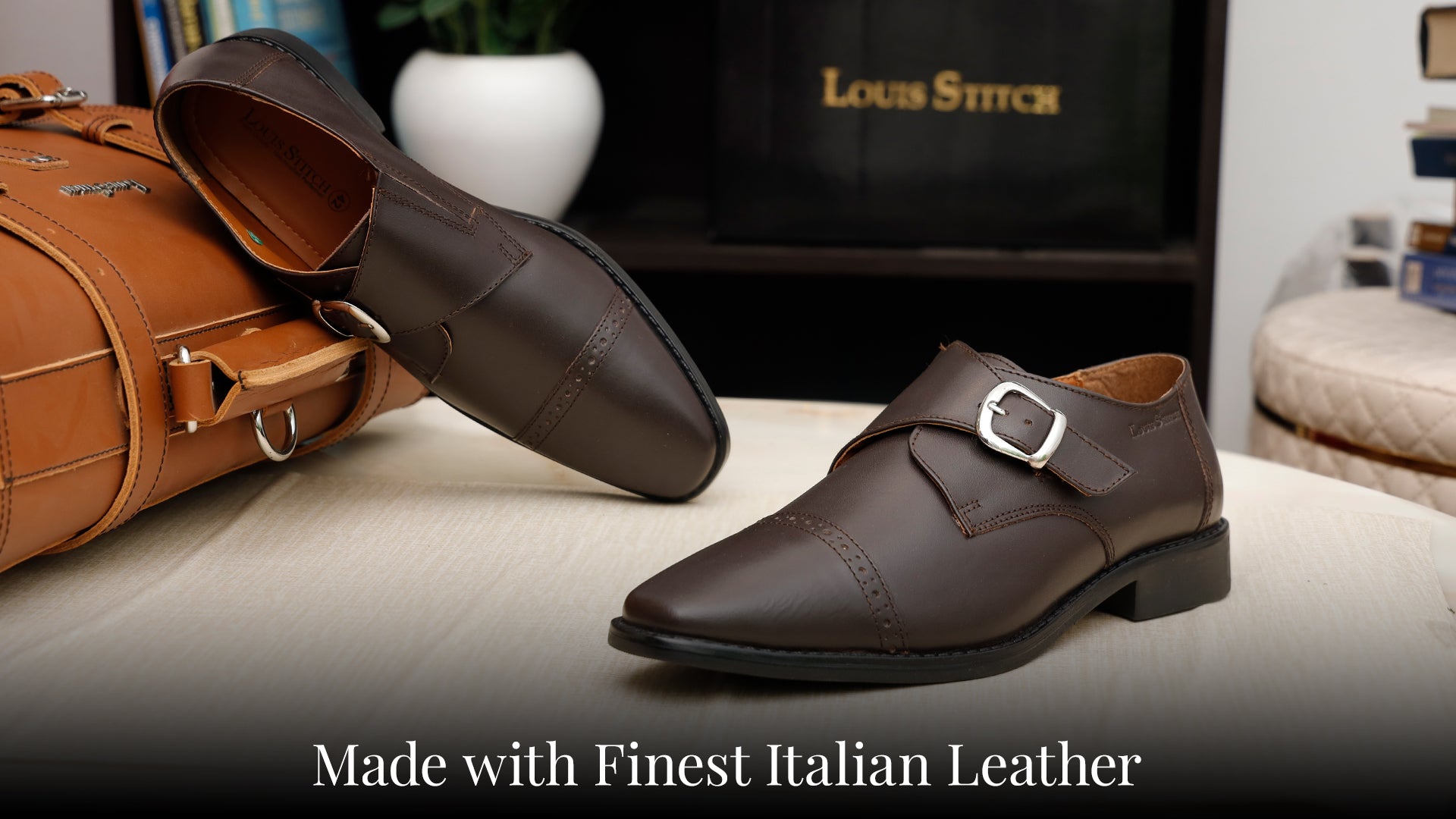 Handcrafted with Premium Italian Leather, these Monks are a must-have for every casual occasion. With a perfect blend of luxury & comfort, this LOUIS STITCH masterpiece embarks on a unique style statement. Style made on soft chiseled Nairoby last, very versatile in style since it perfectly works for both elegant and formal looks. Squared shaped last with standard fitting for Medium sized feet.