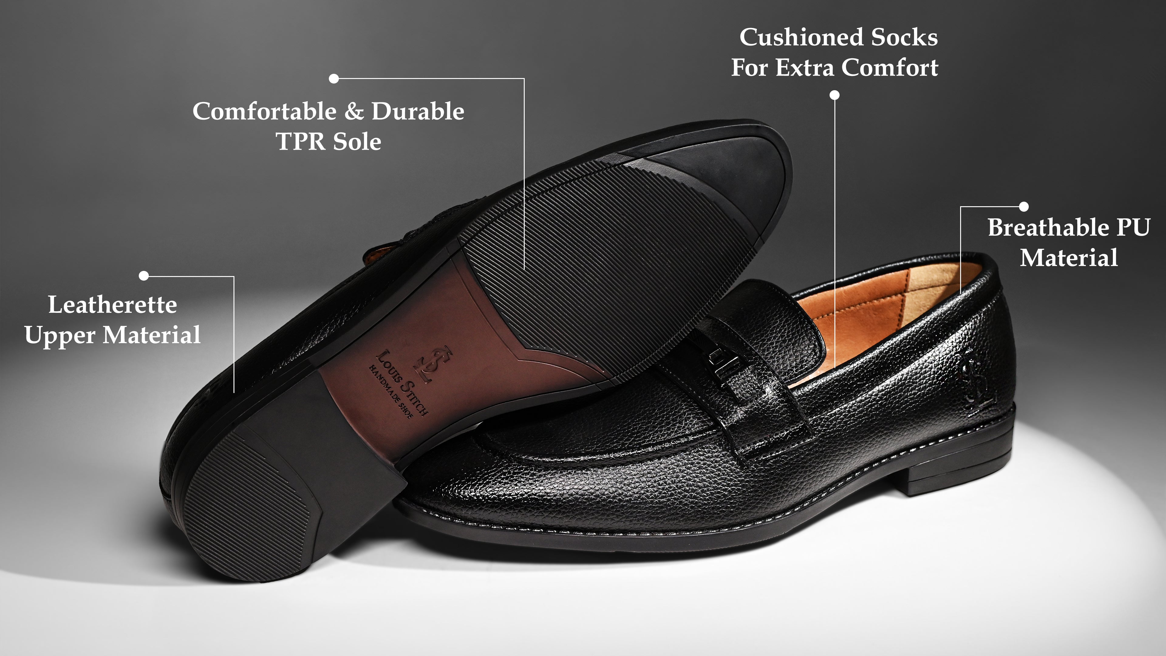 The LOUIS STITCH Exclusive Collection of Men’s Formal Shoes combines cushion comfort with contemporary design, making them ideal for both formal and business wear. Designed with a Milled Leather, these shoes deliver breathability, flexibility, and a comfort fit. The TPR sole ensures durability with a modern aesthetic. Built with cemented construction and the iconic LS branding, these Moccasin Shoes for men provide long-lasting wear and versatile style. Whether for business, travel or outings, they perfectly balance performance with elegance. For the man who chooses LOUIS STITCH — Walk Bold. Live Brave. Go Beyond.