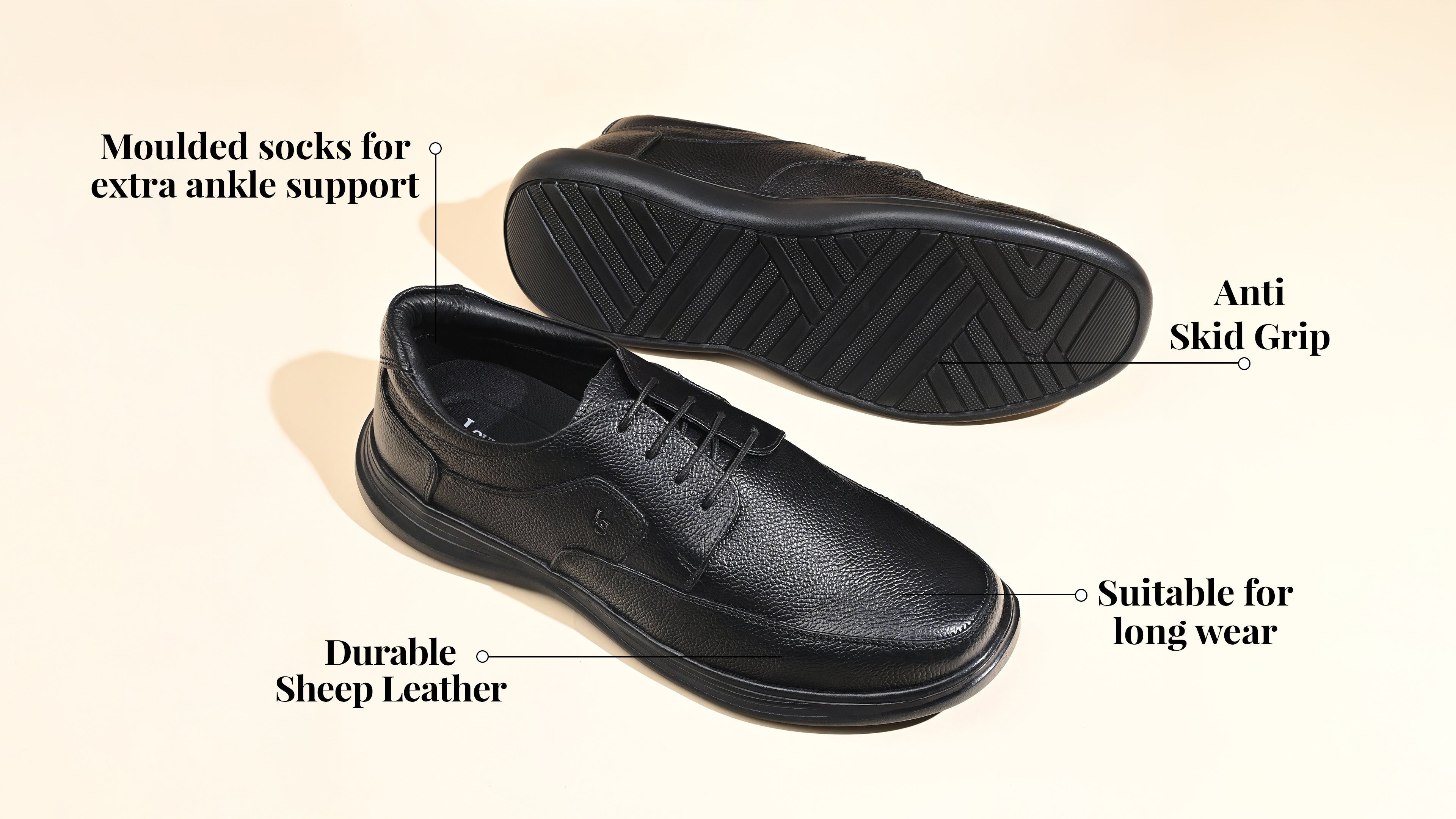 - A key highlight of these formal shoes is their molded cushioned socks, ensuring extra softness and ease with every step.