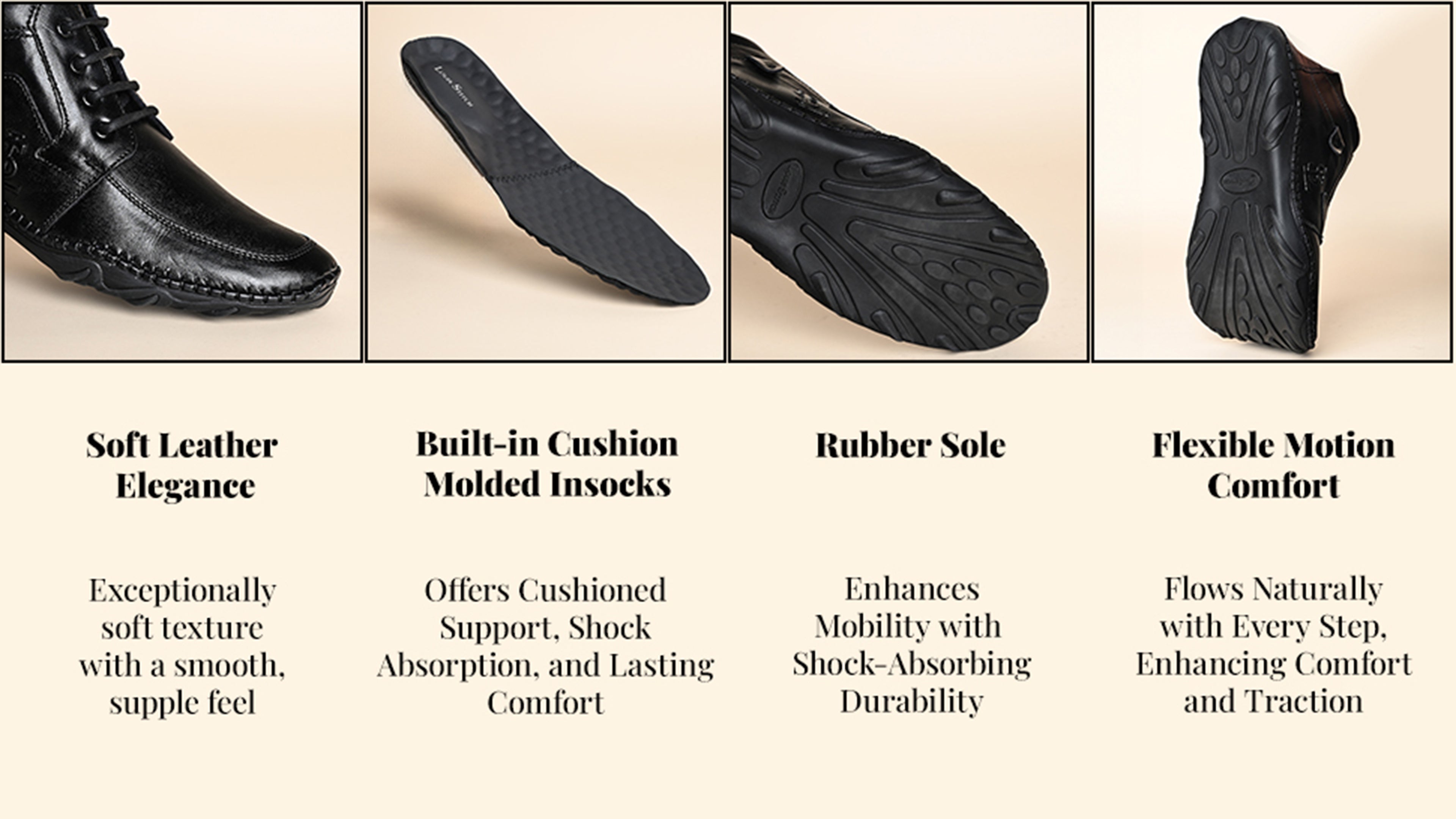 - Cushioned Insoles for Enhanced Comfort: These formal shoes for men are ideal for long periods of standing or walking, providing superior comfort with their built-in cushioned sock technology.
