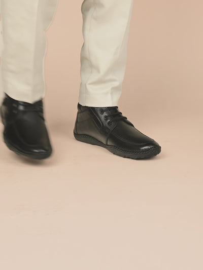 Jet Black Genuine Leather Ultra Lightweight Mid-Ankle Derby Shoes