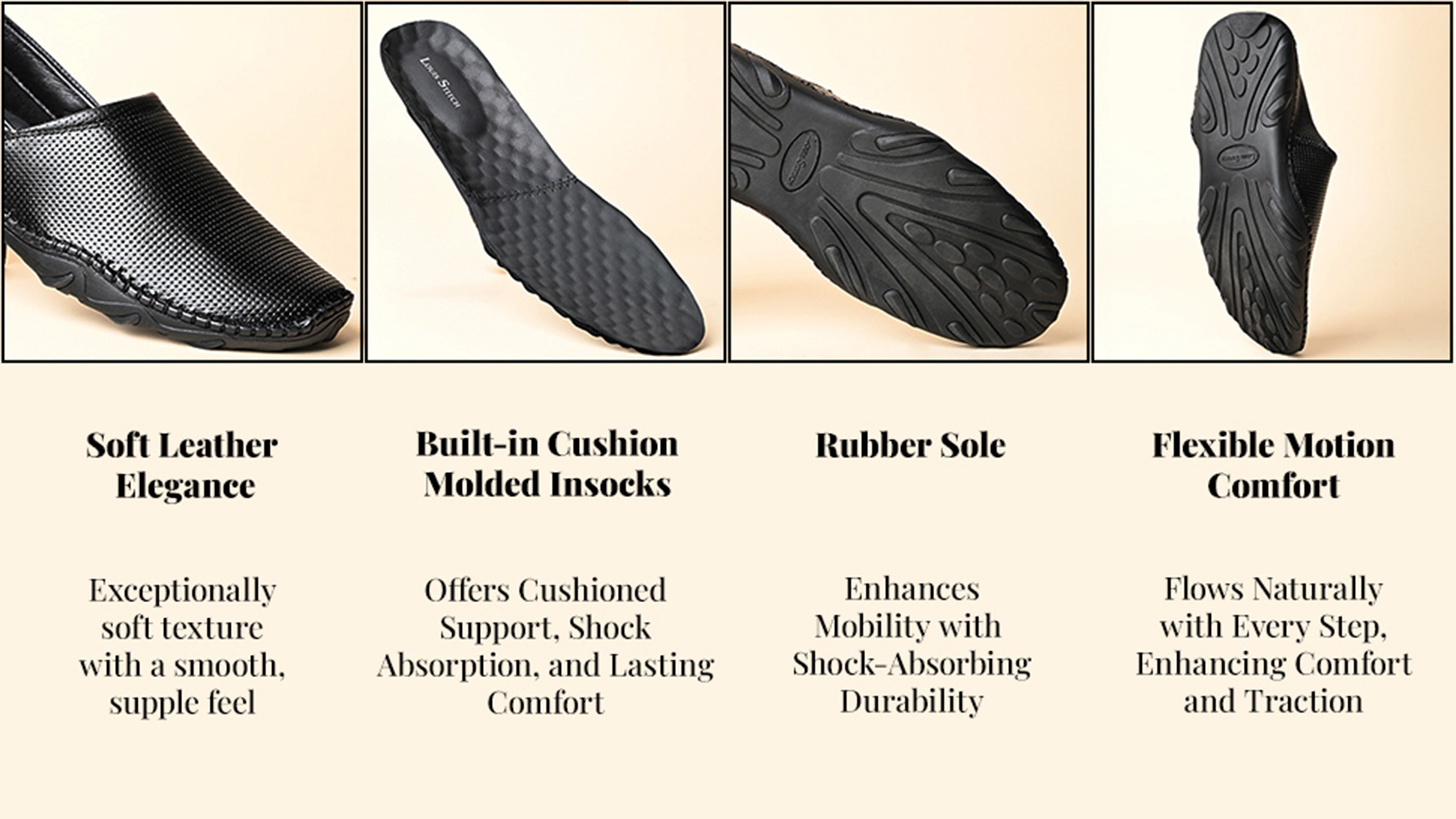 - Rubber Sole for Excellent Grip: These stylish black jutis for men feature a rubber sole, providing contemporary comfort, enhanced flexibility, and superior foot support for effortless movement.