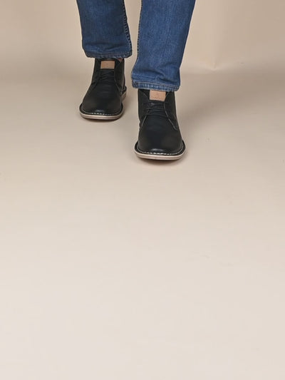 Jet Black Italian Leather British Stitch Down Chukka Boots