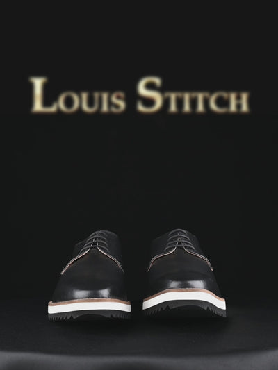 The LOUIS STITCH Exclusive Collection of men's casual Derbys shoes brings together premium craftsmanship, comfort, and timeless style. Made from high-quality leather, these shoes are designed to deliver a luxurious feel while ensuring long-lasting durability. The meticulously crafted sole combines lightweight EVA for customized comfort with a sulpha belt that enhances arch support, flexibility, and durability, making them ideal for all-day wear. Whether you're standing or walking for extended periods, the built-in cushioned sock technology provides superior comfort, reducing strain on your feet. One of the standout features of these derbys has lace-up, offering effortless wear, quick access, and a secure yet relaxed fit. Their versatile appeal allows them to seamlessly complement both casual and semi-formal outfits, making them a perfect choice for any occasion where style and comfort go hand in hand.