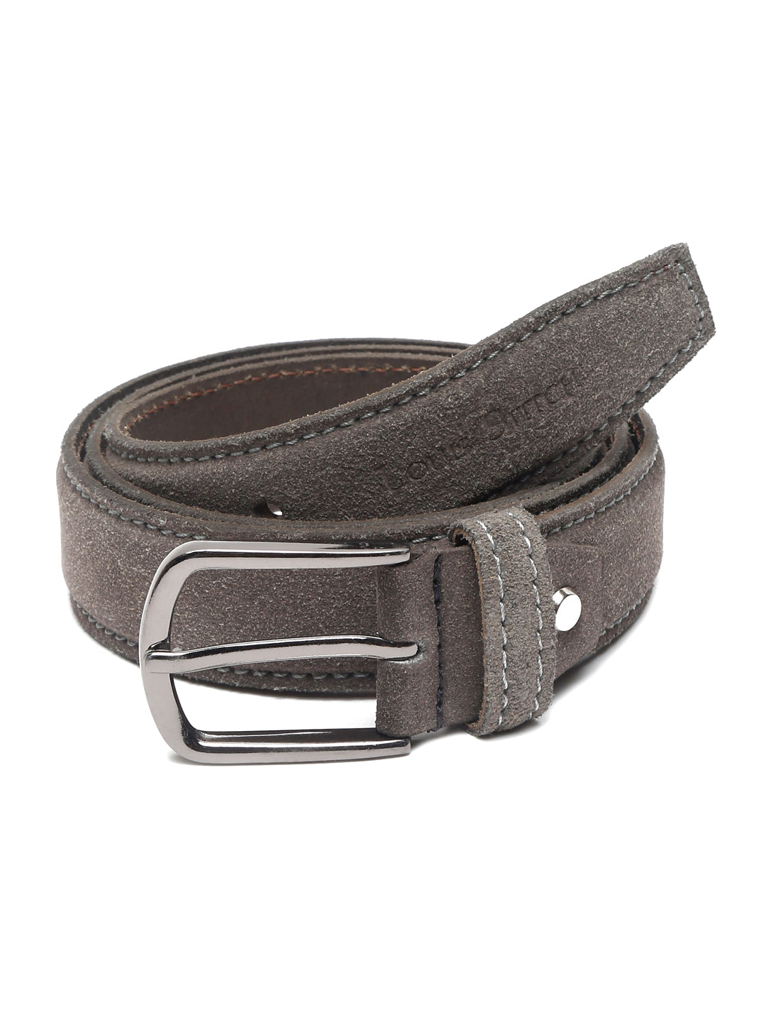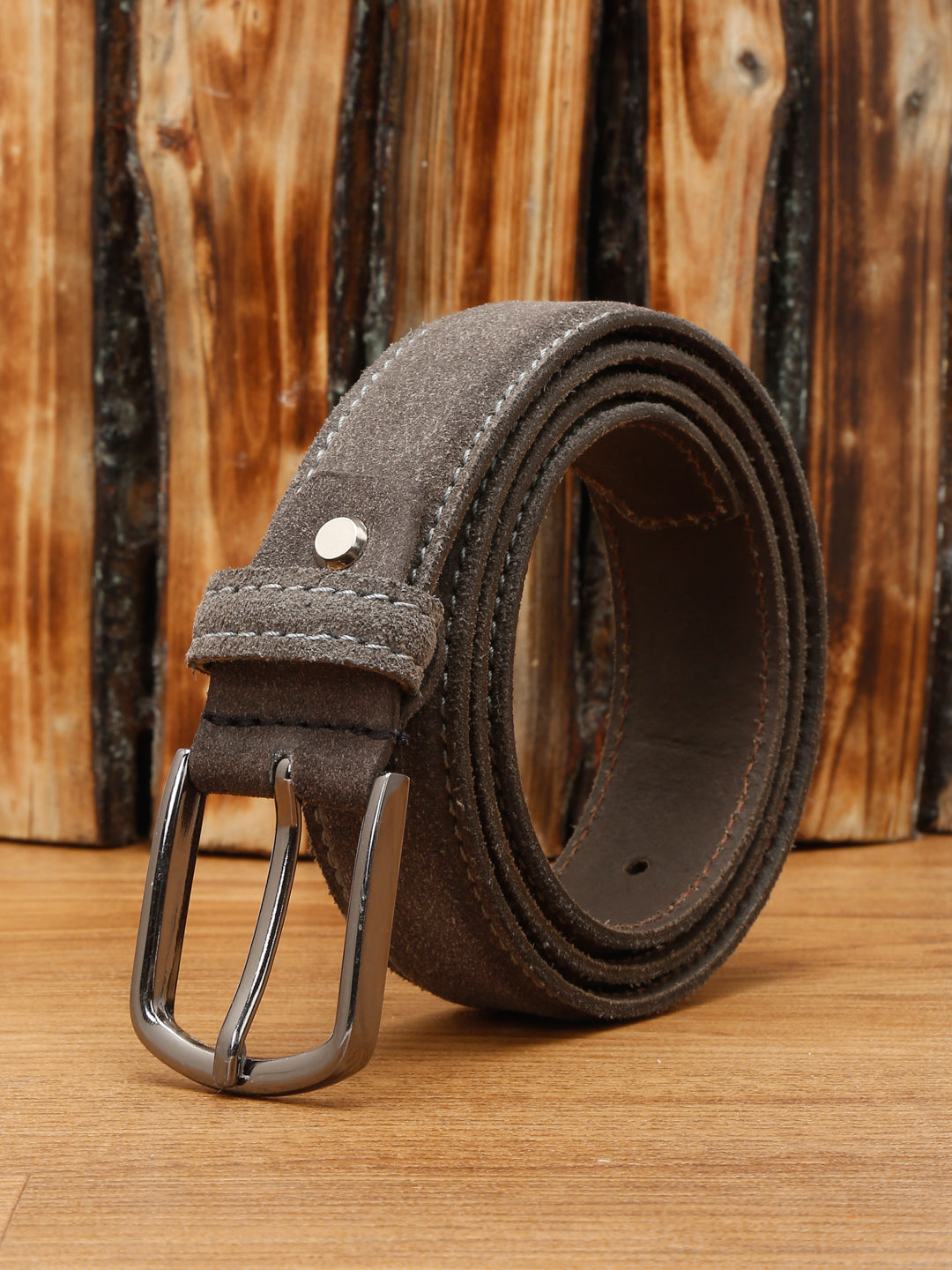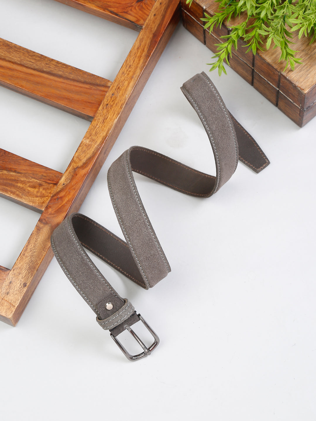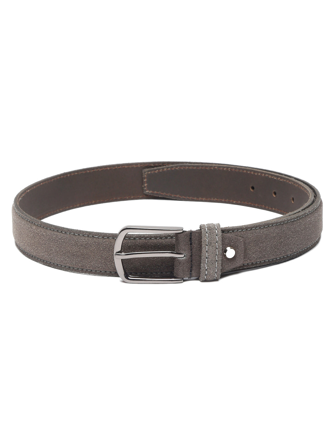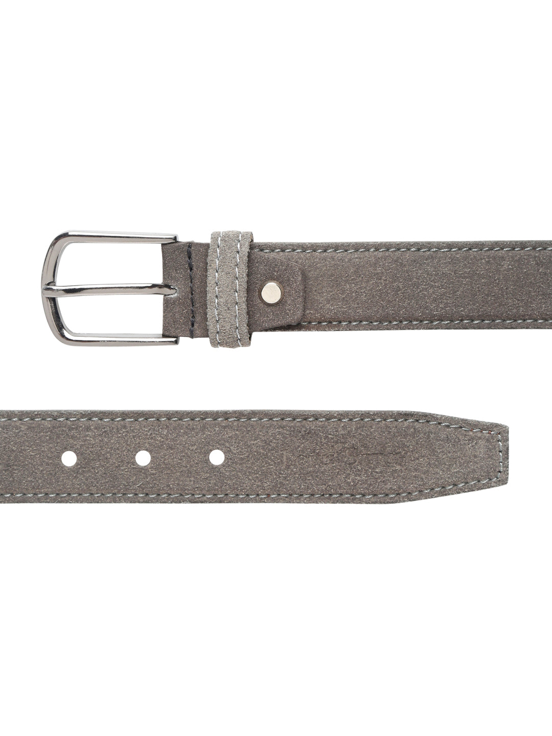Men'S Ash Grey Italian Suede Leather Belt Handcrafted With Glossy Buckle