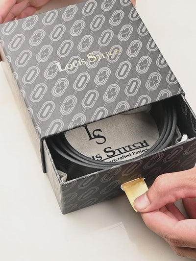 Louis Stitch's signature packaging, elegantly designed in Black, is wrapped with a refined golden and black ribbon. Please note, images are for representation purposes only