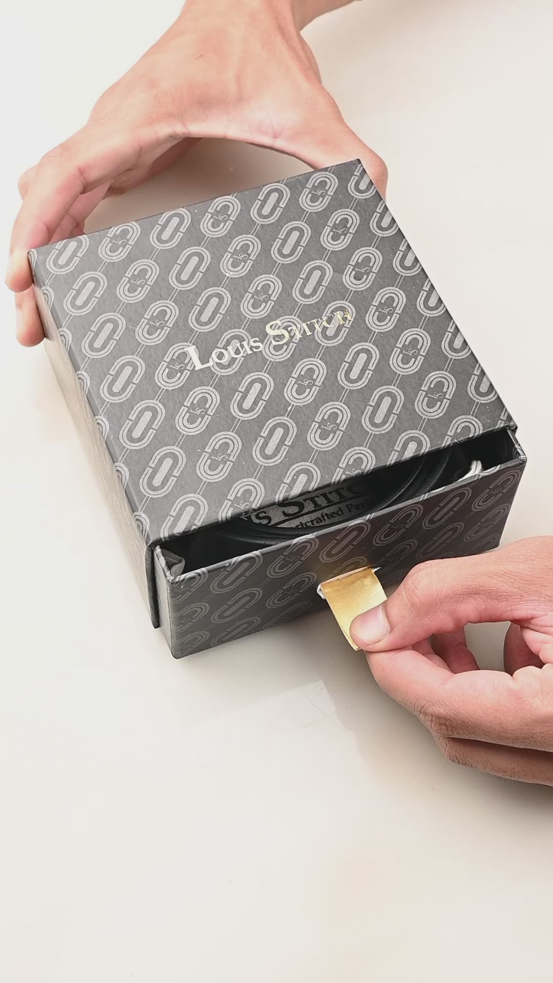 Louis Stitch's signature packaging, elegantly designed in Black, is wrapped with a refined golden and black ribbon. Please note, images are for representation purposes only