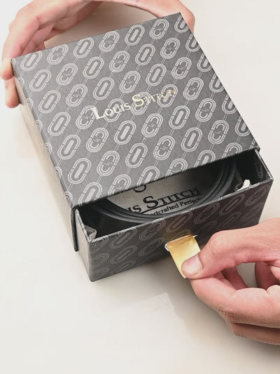 Louis Stitch's signature packaging, elegantly designed in Black, is wrapped with a refined golden and black ribbon. Please note, images are for representation purposes only