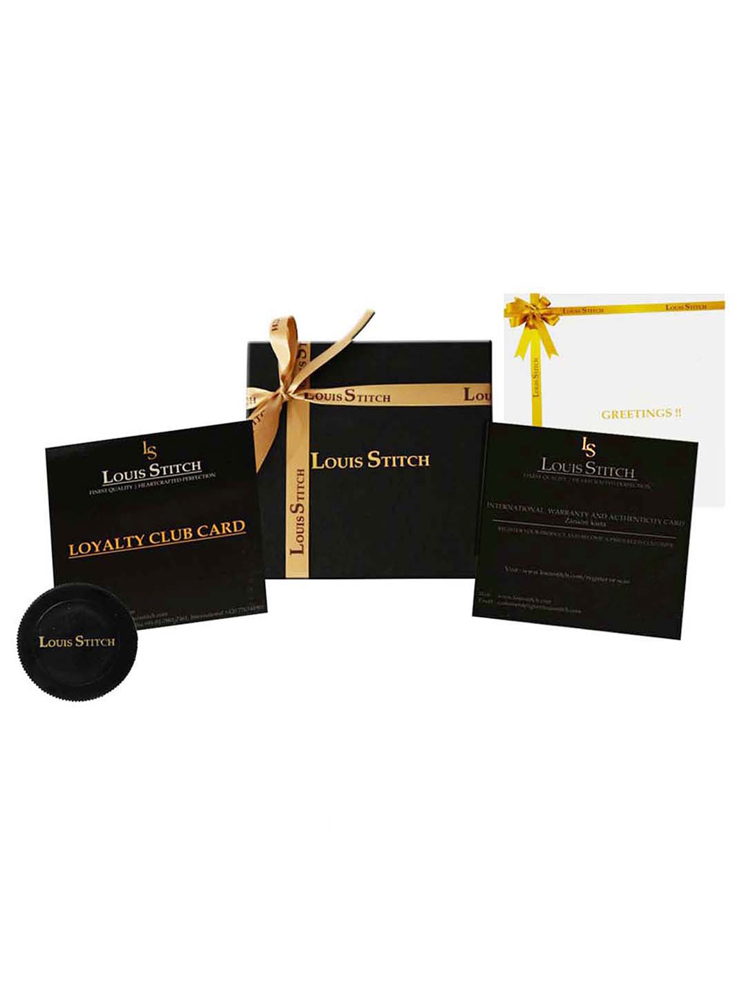 Louis Stitch's signature packaging, elegantly designed in Black, is wrapped with a refined golden and black ribbon. Please note, images are for representation purposes only