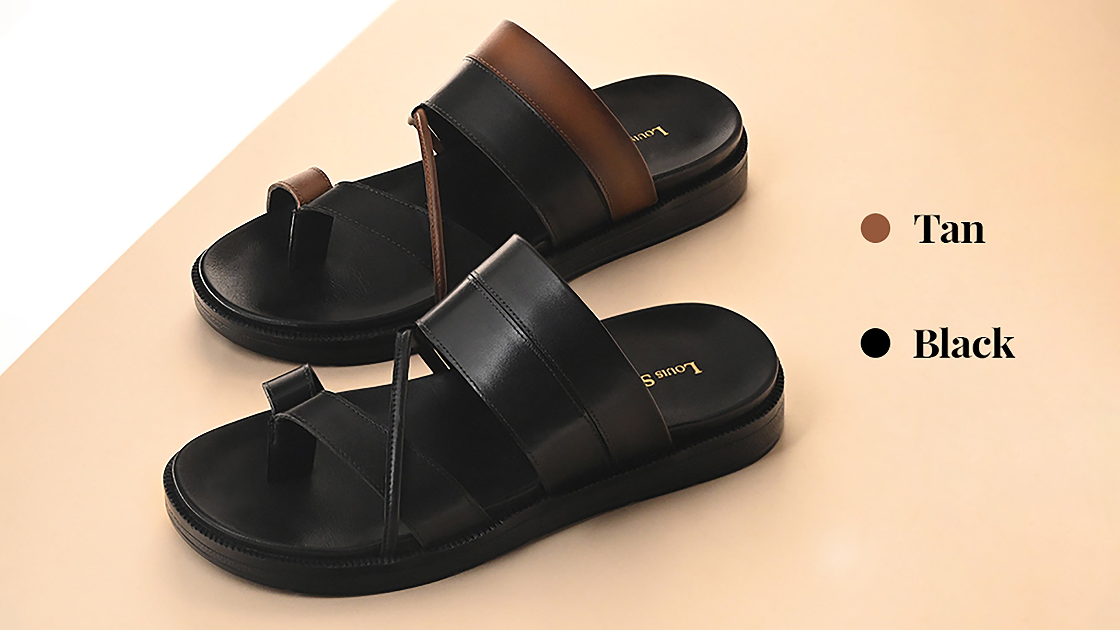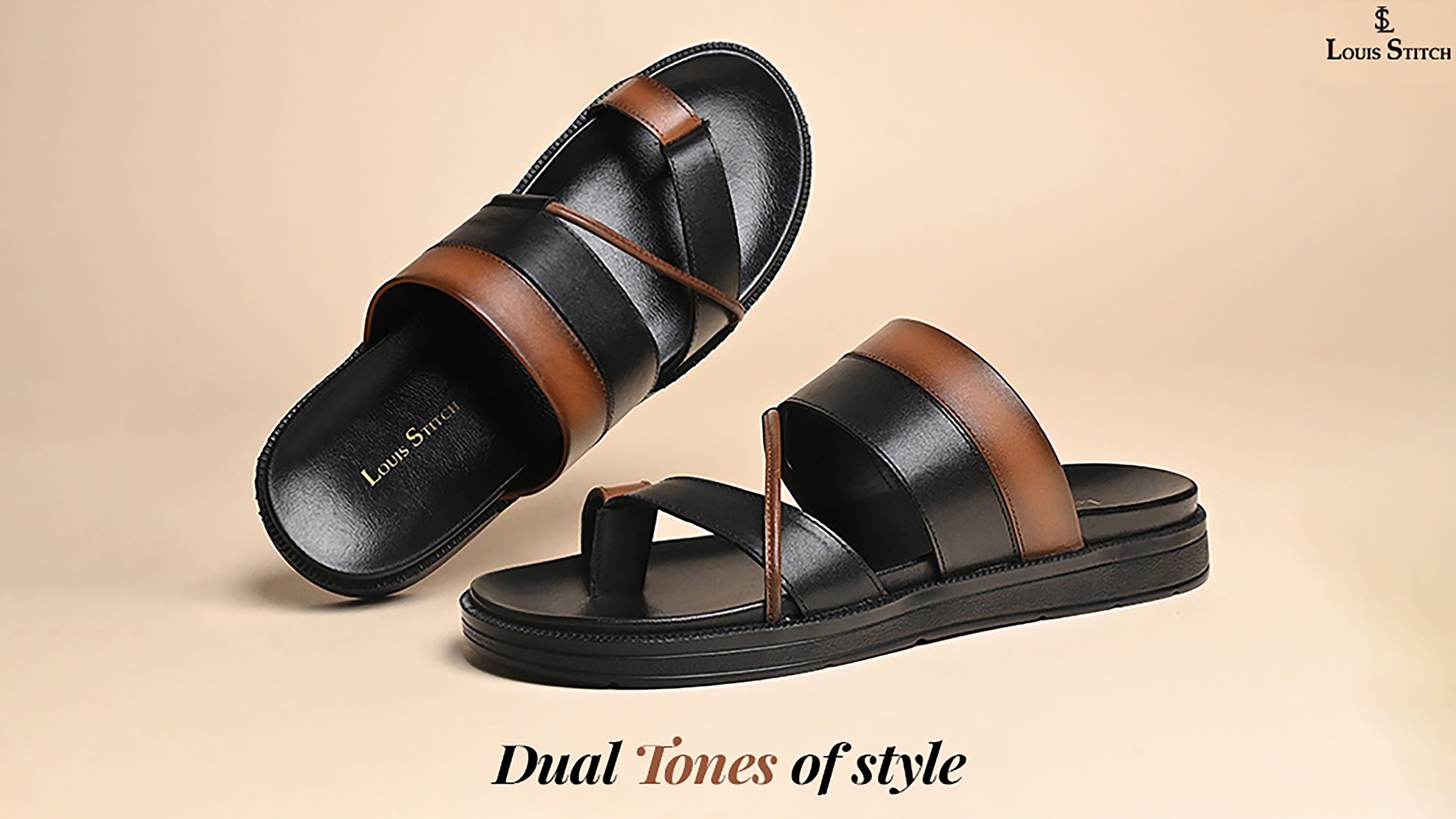 - The sleek dual-color strap on these leather sandals provides a customizable fit for all-day comfort and secure wear, combining stability, style, and versatility in every step.
