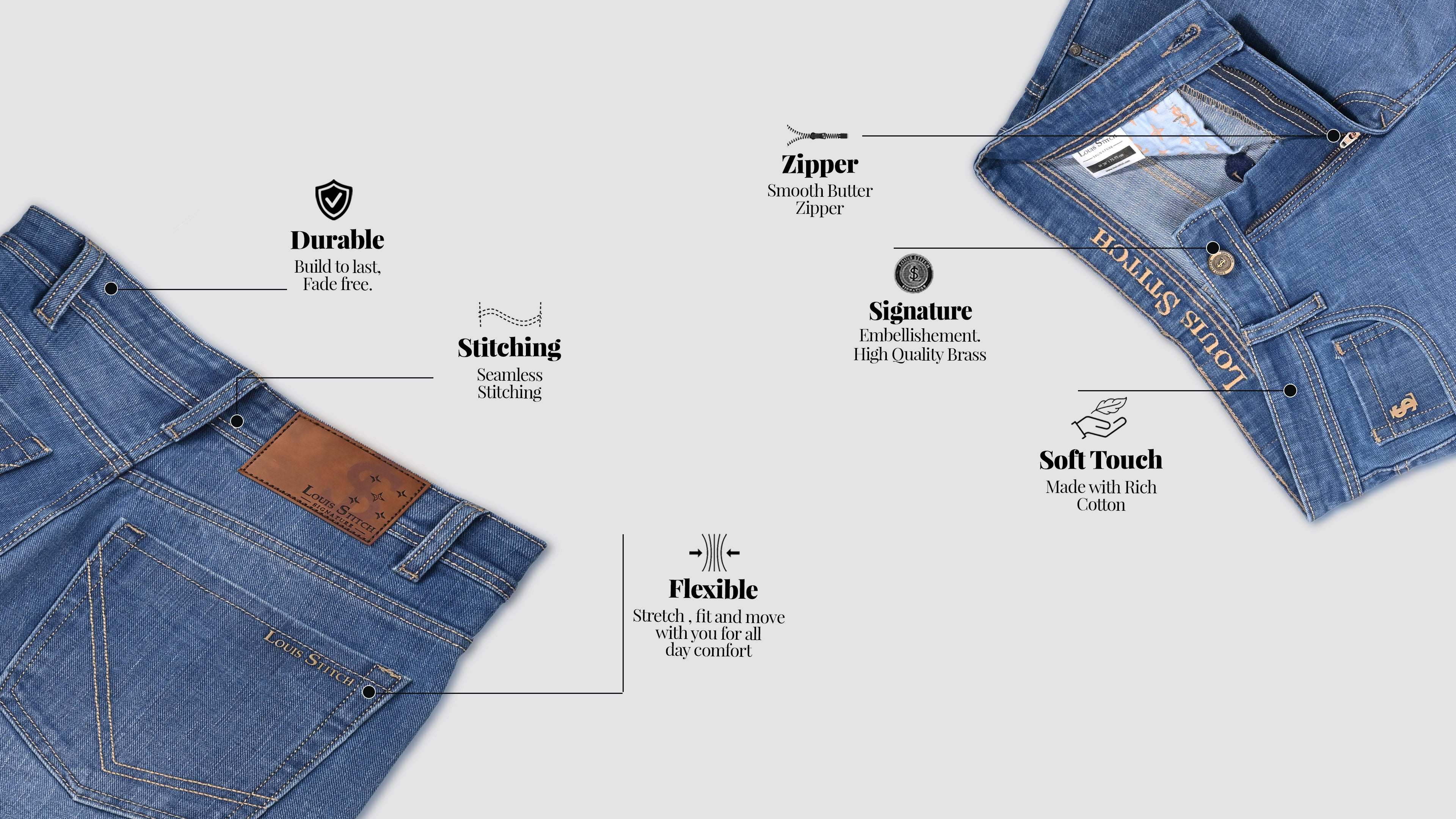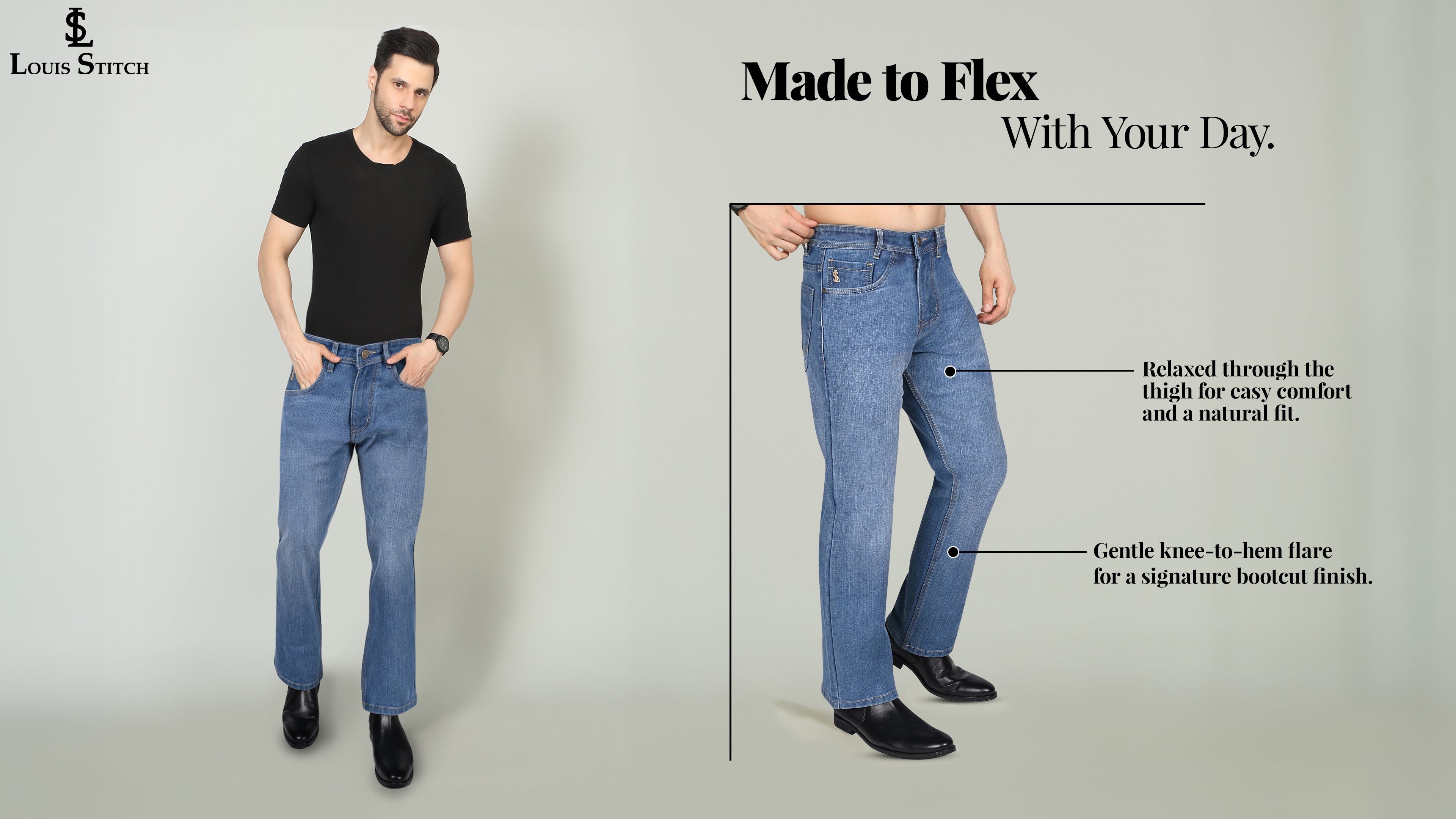 - Bootcut Fit Jeans for long use hours. The length of this Jeans is 44 Inches.