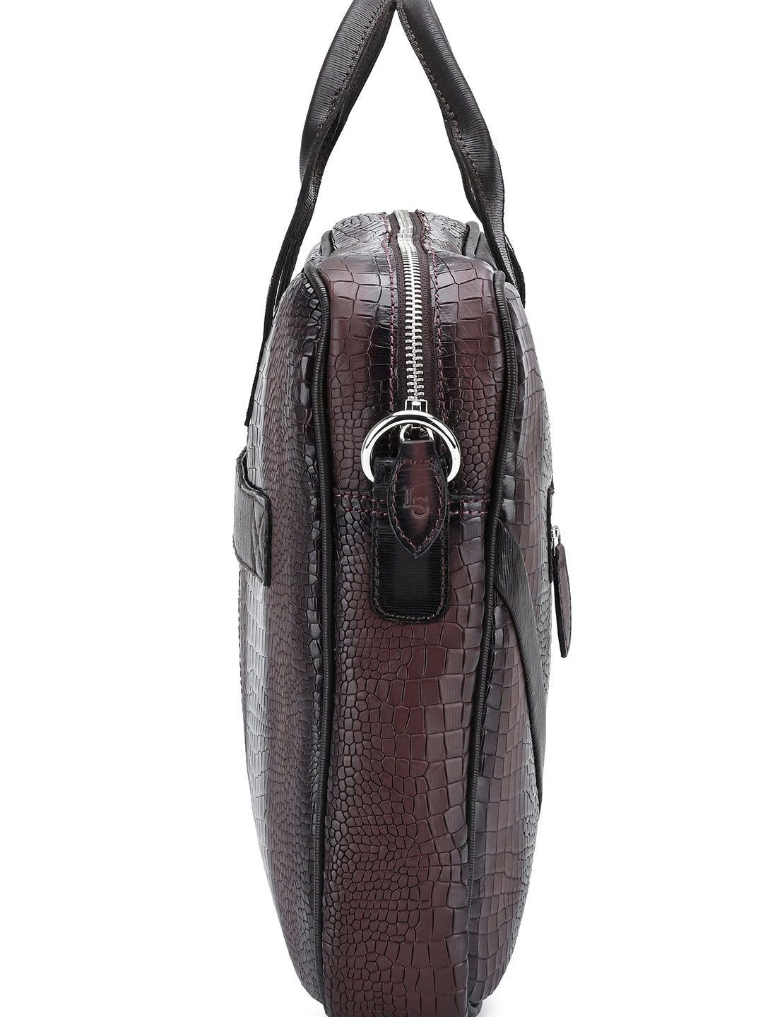 Men's Brown Italian Leather Dual Tone Laptop Bag with Shoulder Strap