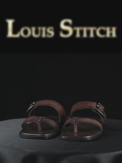- The LOUIS STITCH Exclusive Collection of Men's Open Footwear presents this open toe leather sandal, crafted with a tunit welted sole and comfortable cushion to deliver exceptional comfort and style.