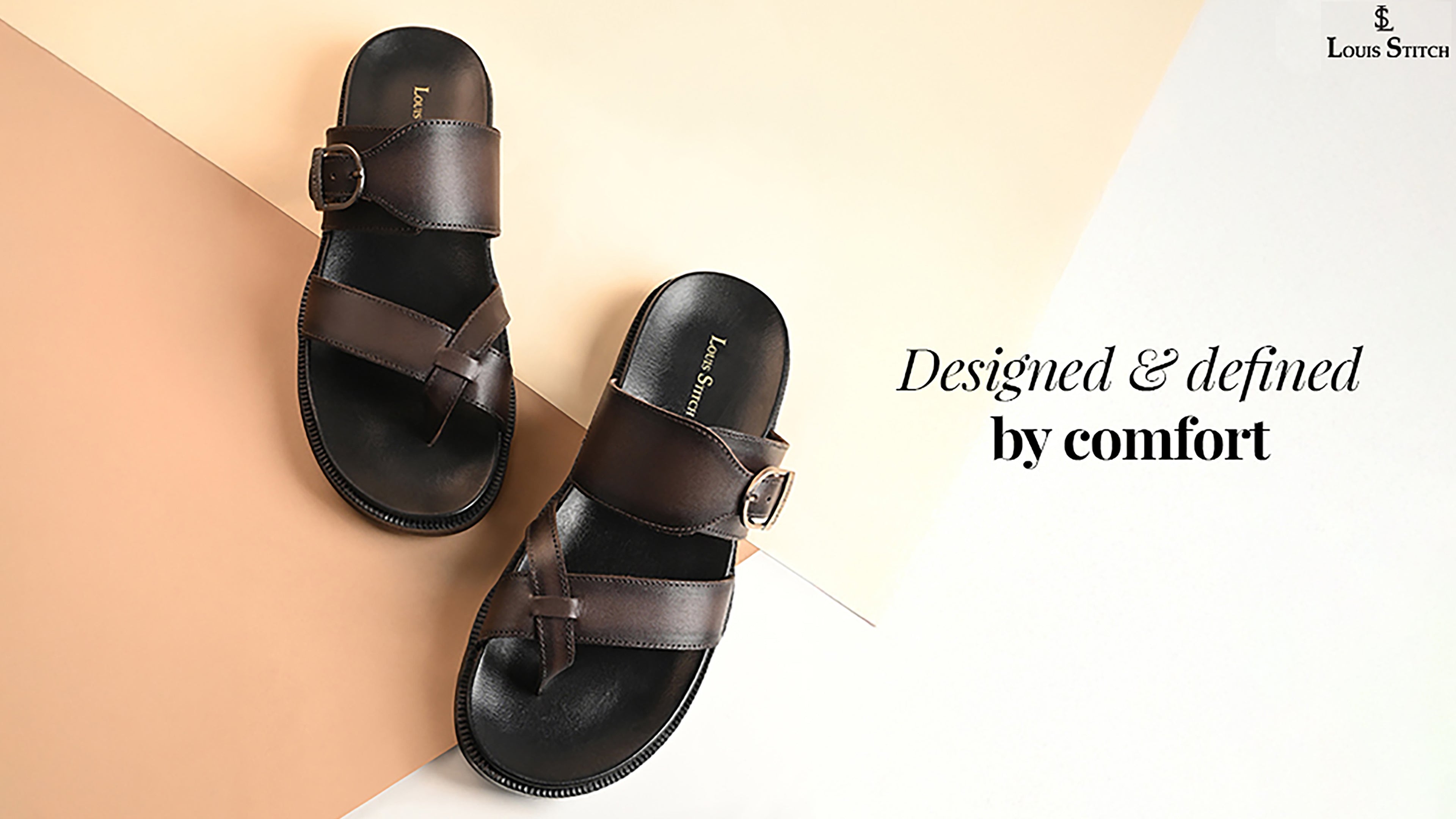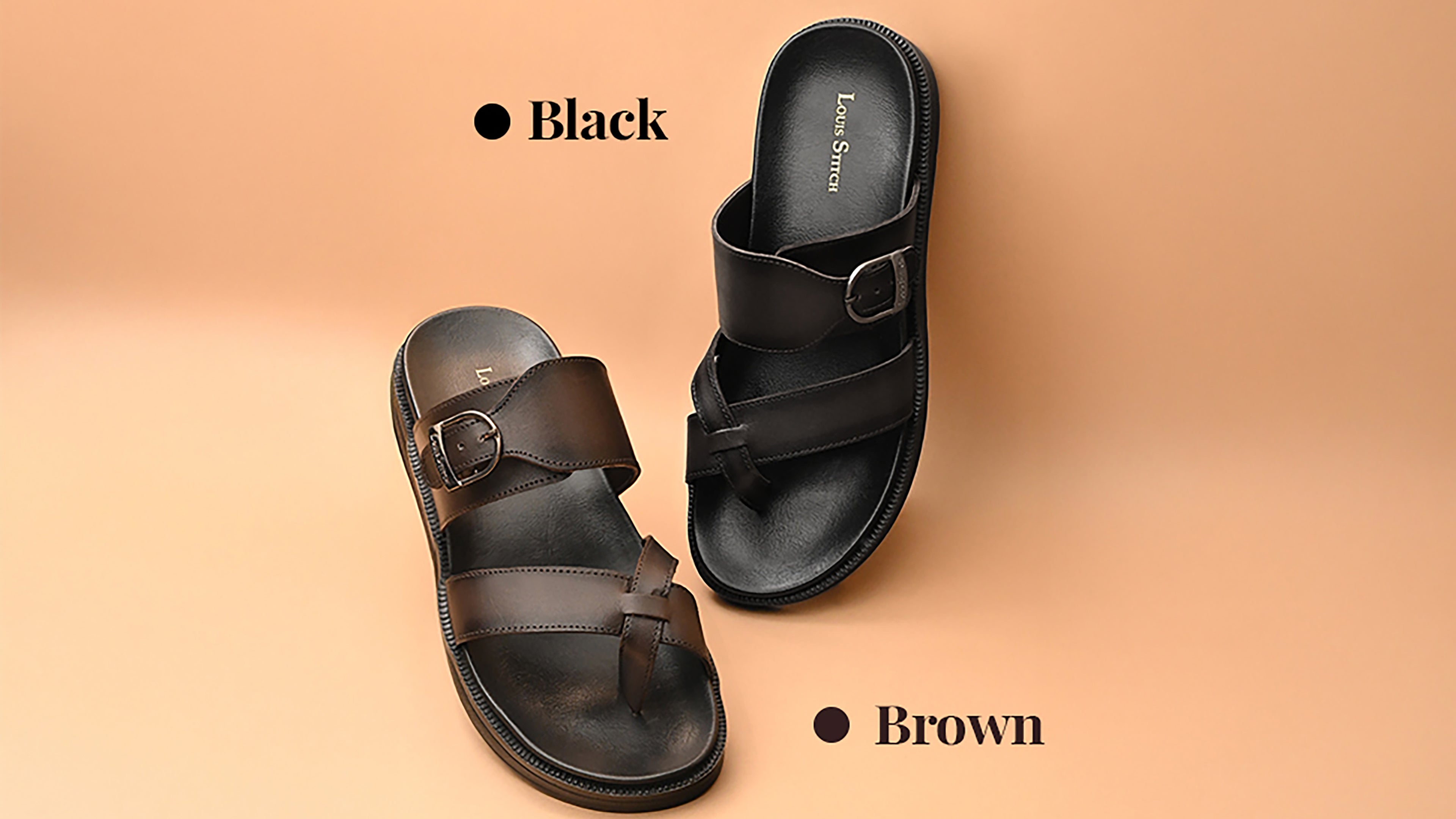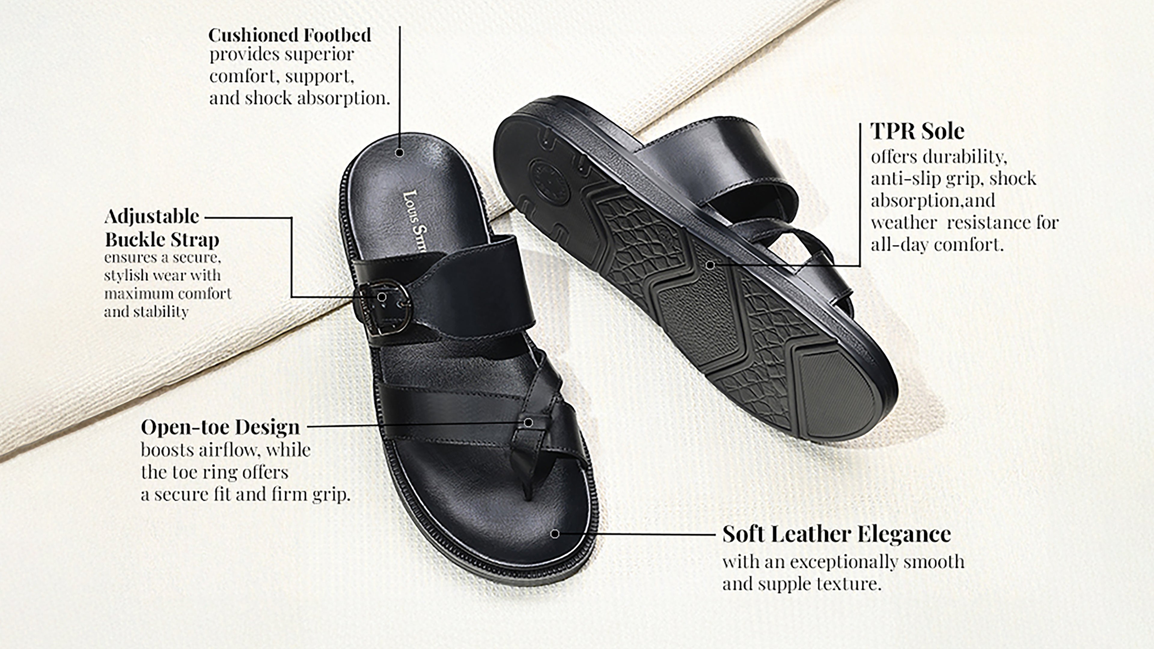 - The LOUIS STITCH Exclusive Collection of Men's Open Footwear presents this open toe leather sandal, crafted with a TPR sole to deliver exceptional comfort and style.