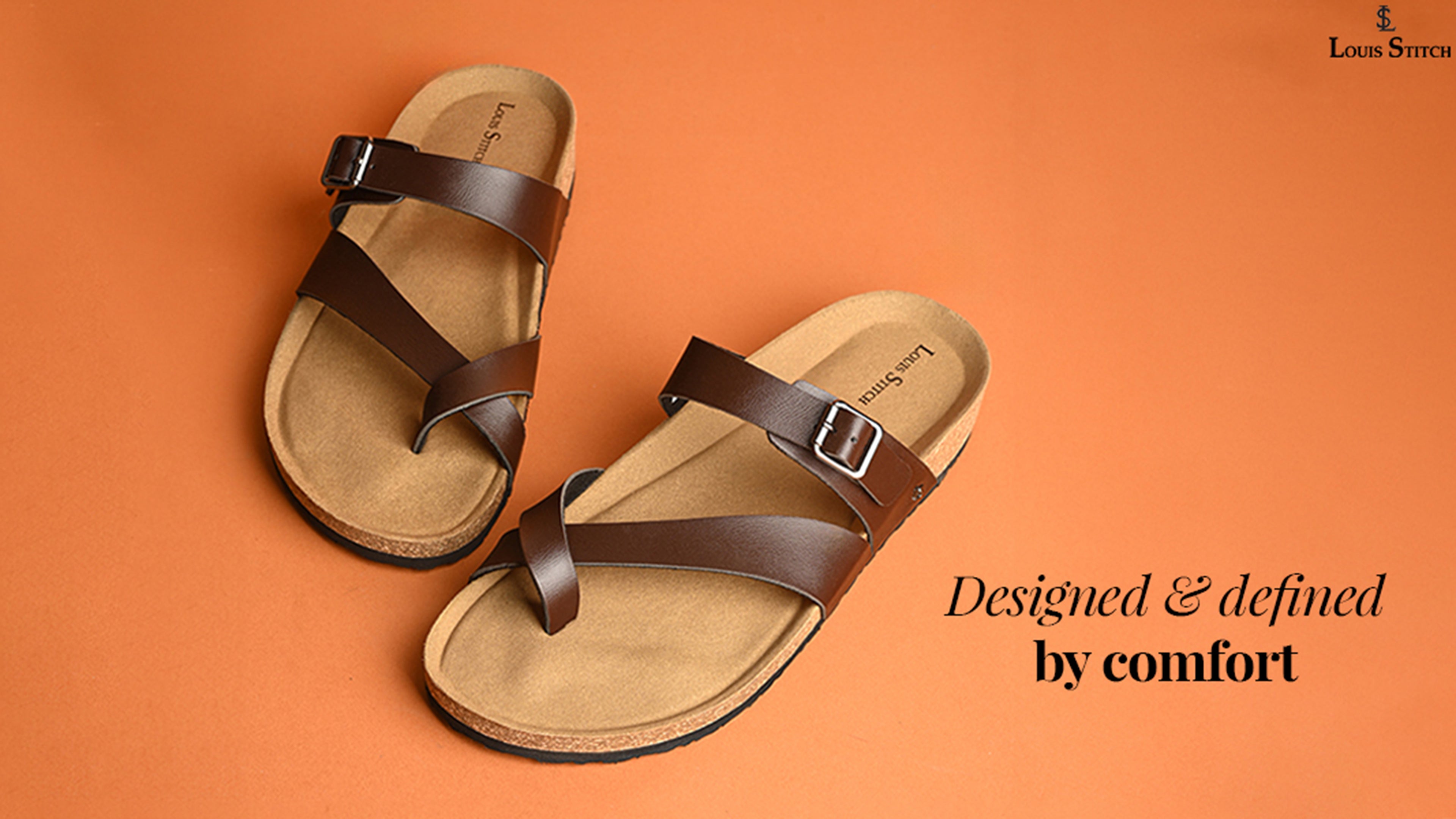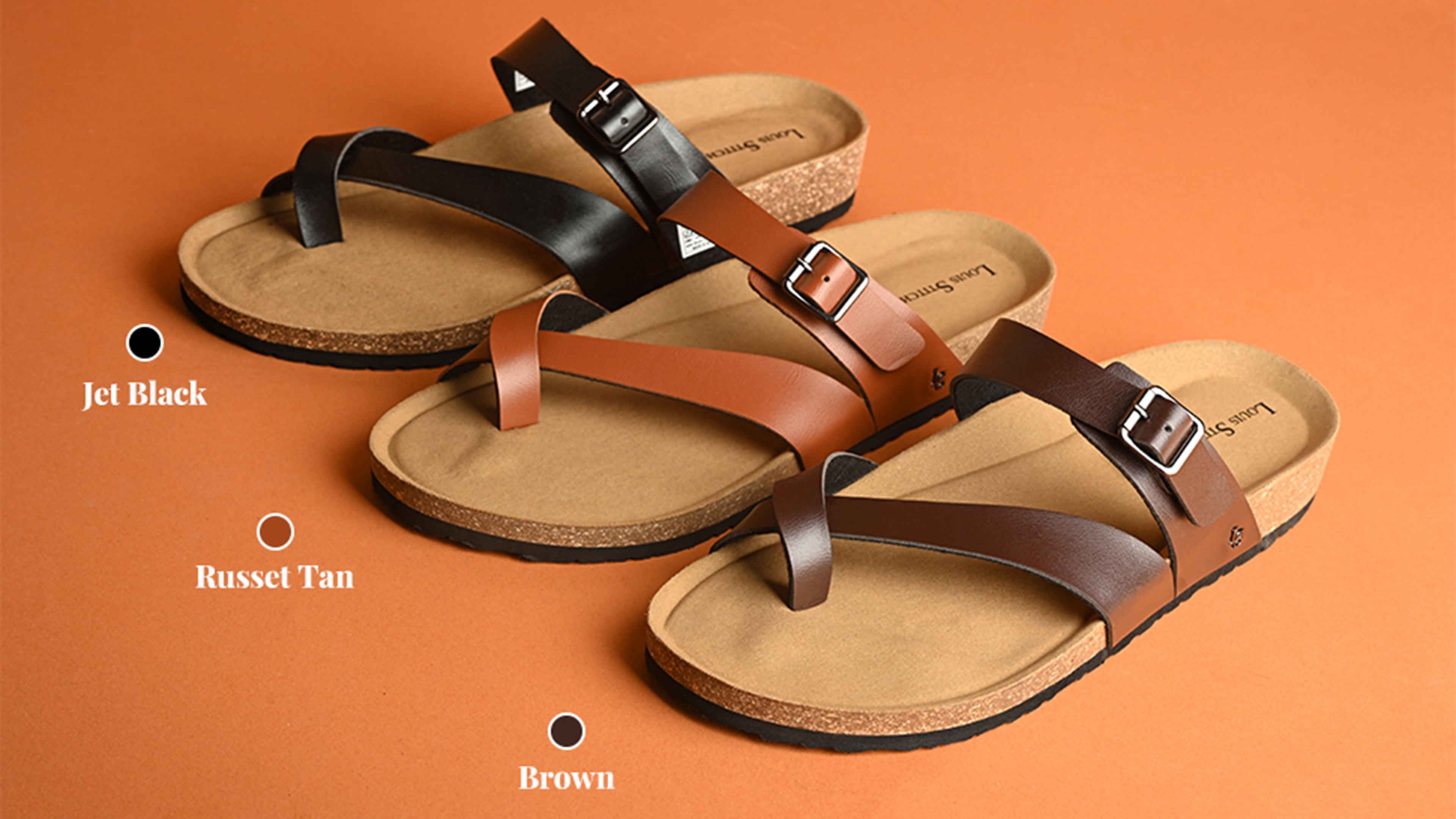 - The LOUIS STITCH Exclusive Collection of Men's Open Footwear presents this open toe ring sandal, crafted with a cork and EVA sole to deliver exceptional comfort and style.