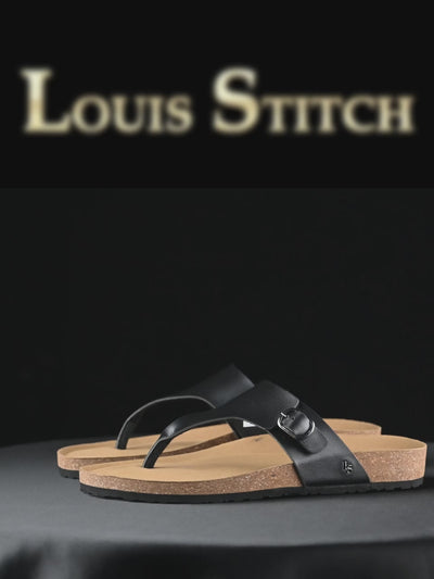- The LOUIS STITCH Exclusive Collection of Men's Open Footwear presents this thong sandal, crafted with a cork and EVA sole to deliver exceptional comfort and style.