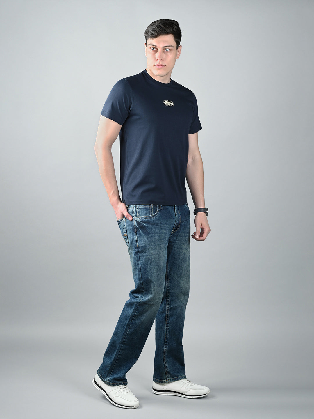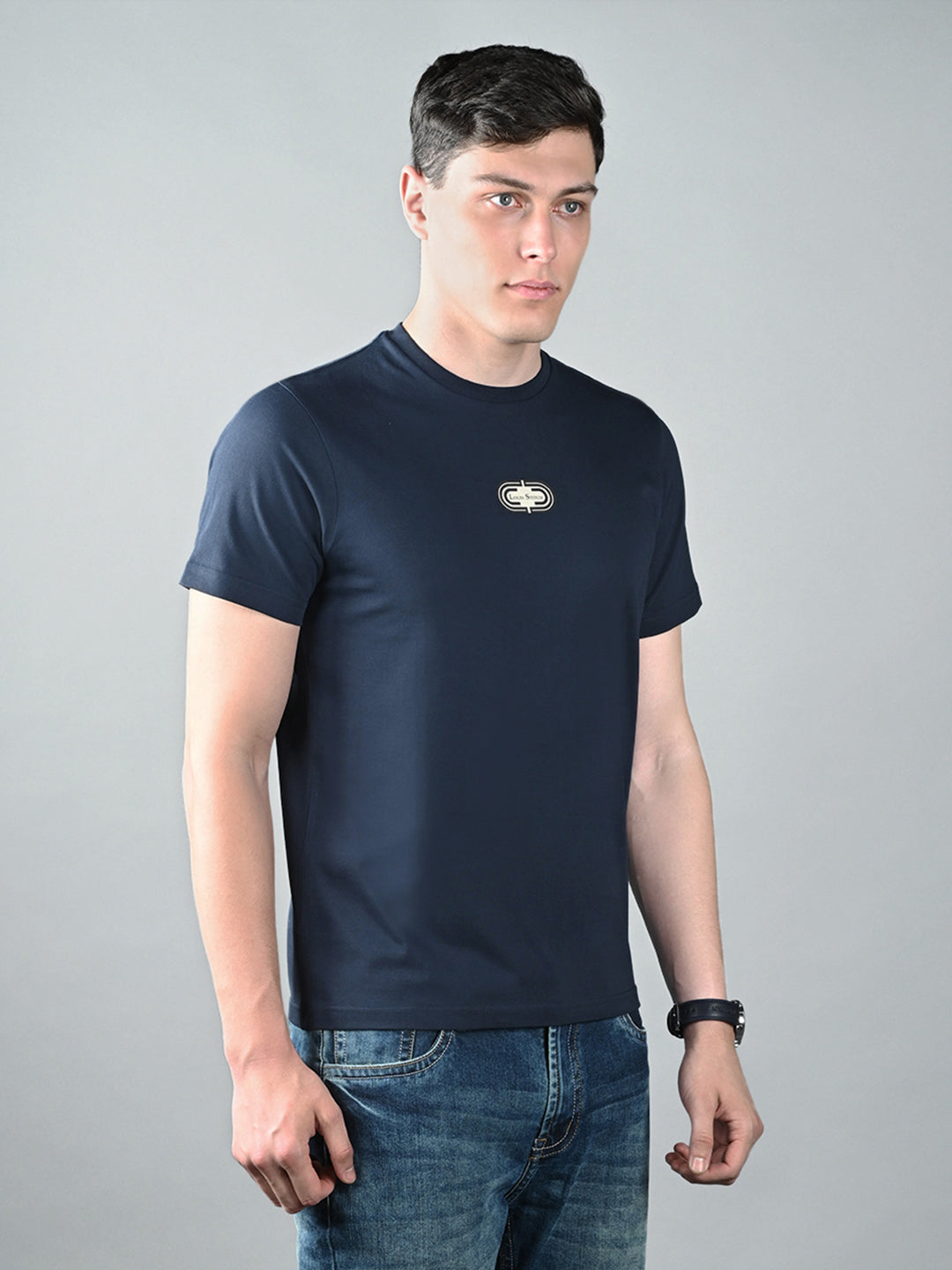 Men's Navy Blue Super Combed Cotton Printed T-shirt