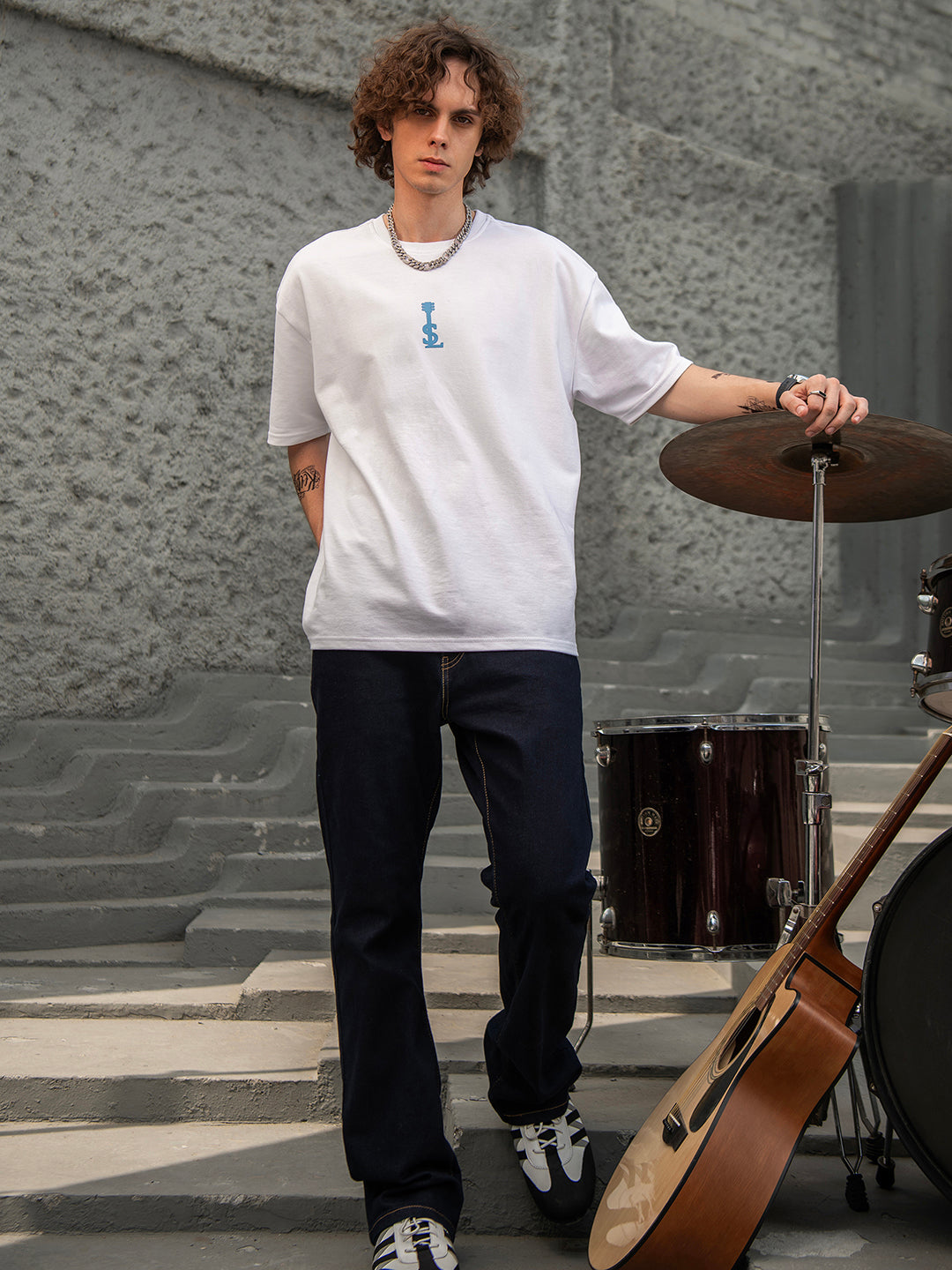 White Rock Ballad Cotton Printed Oversized T-Shirt