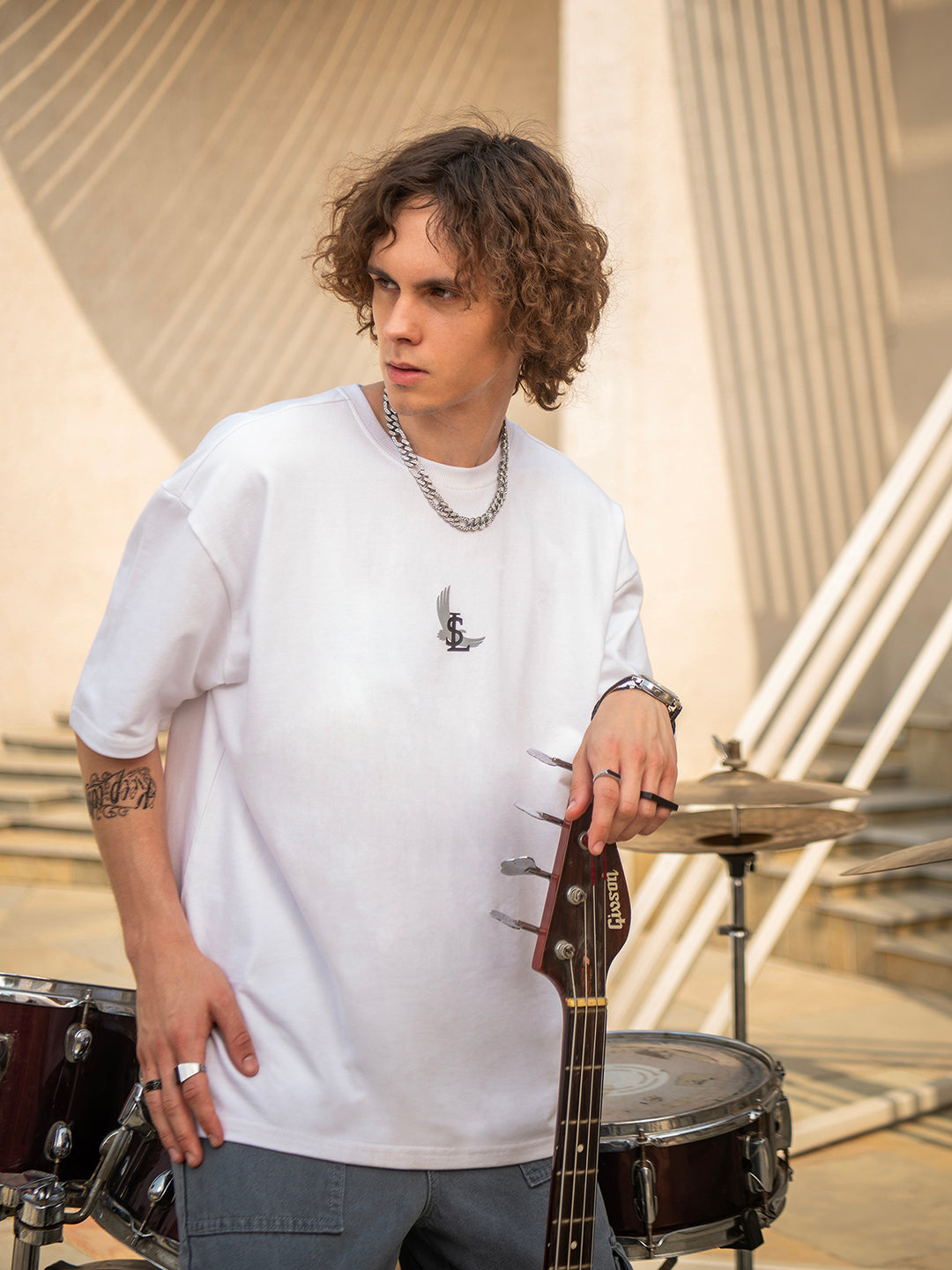 White Rock Ballad Cotton Printed Oversized T-Shirt