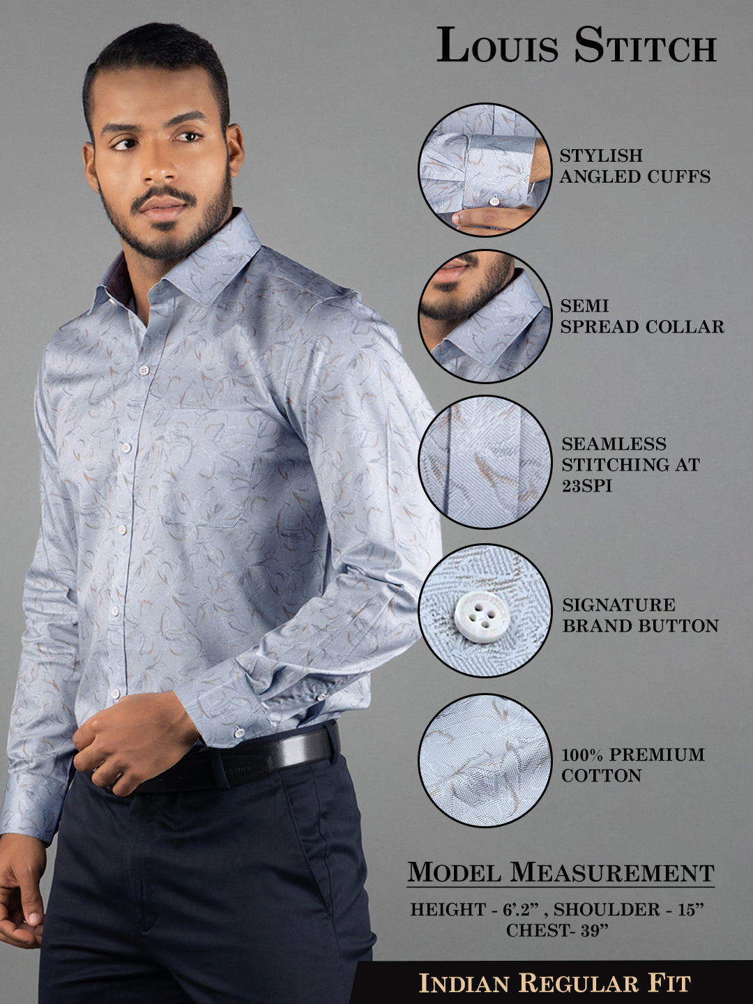 Our commitment is to deliver perfection in every aspect, ensuring that each shirt fits you flawlessly and exudes unmatched sophistication. 100% Cotton ensures breathability and comfort, making our shirts a pleasure to wear throughout the day.