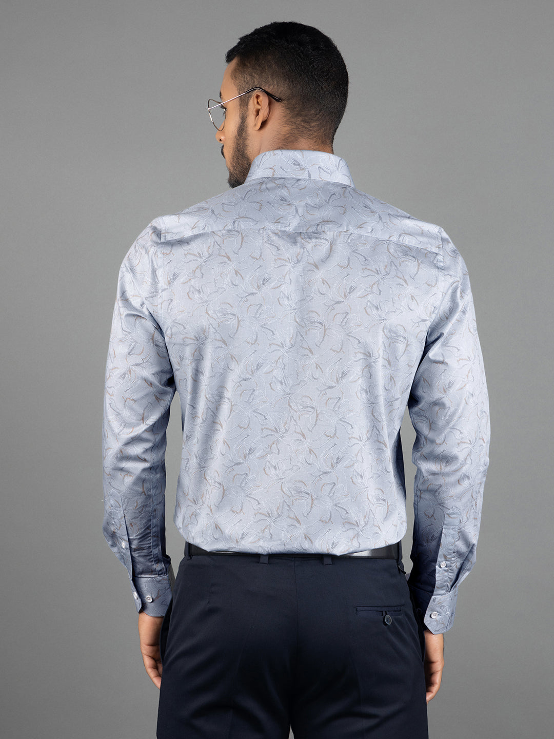 Men's Regular Fit Floral Blue Formal Shirt