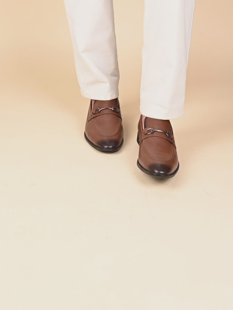 Russet Tan Shoes Slipon Style Comfortable Moccasins with Buckle