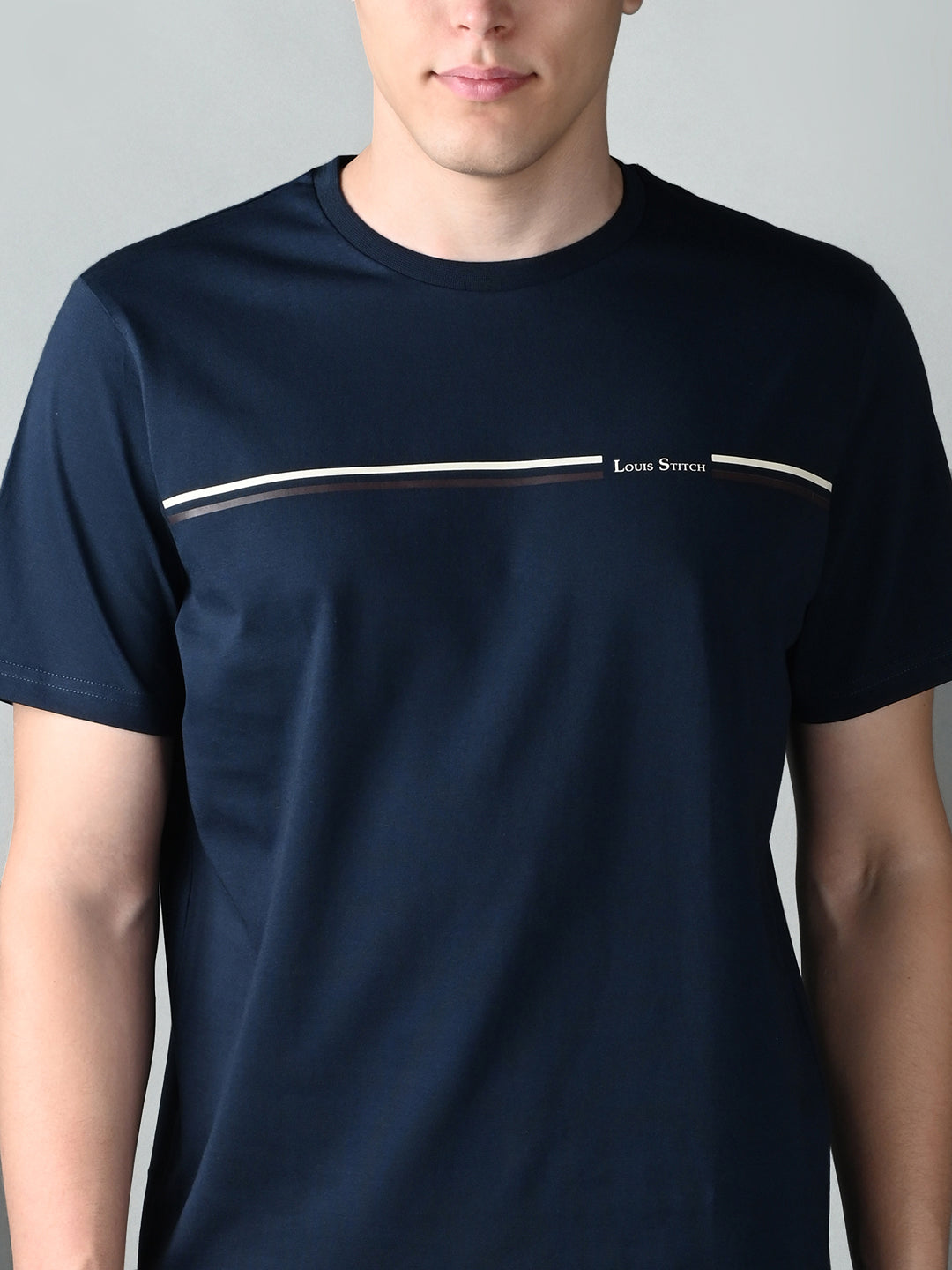 Men's Super Combed Cotton Navy Blue Regular Fit Half Sleeve Round Neck T-Shirt