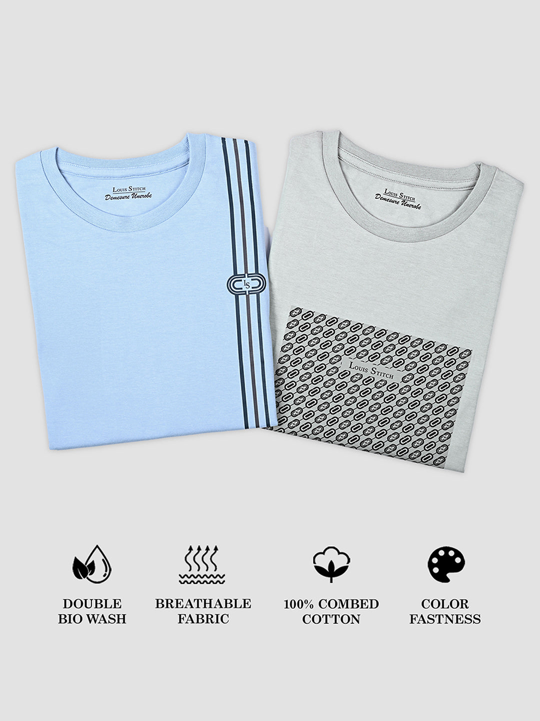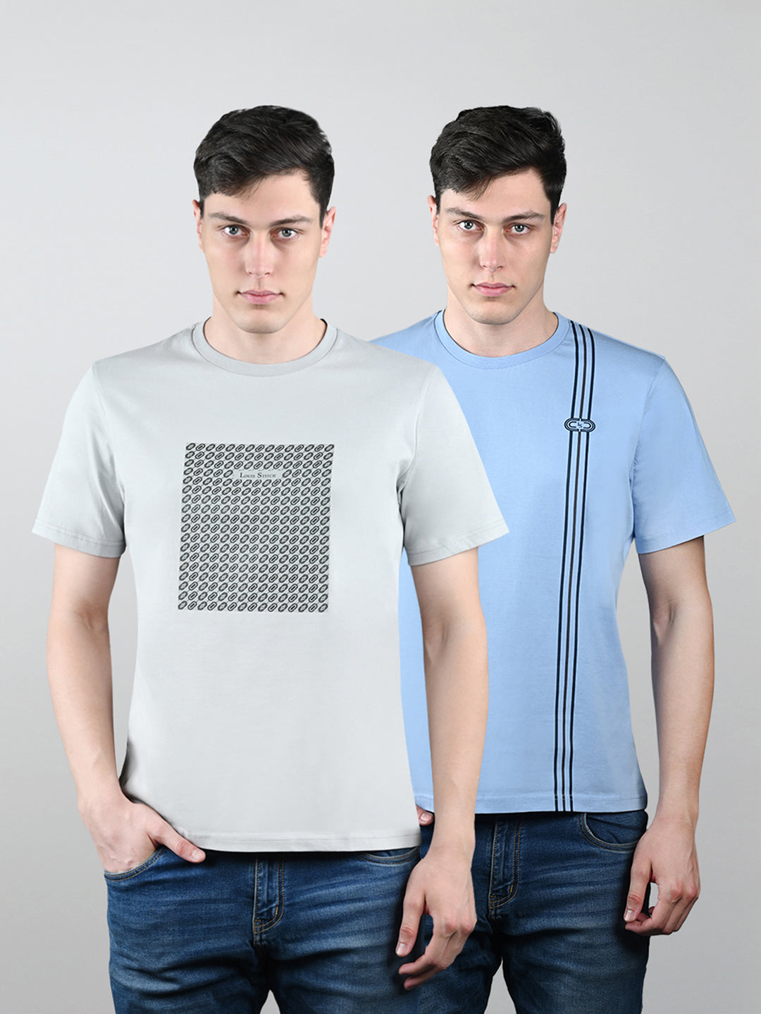 Upgrade your casual wardrobe with our half sleeves Roundneck Pack of 2 T-shirts for men, expertly made with super combed cotton-rich fabric. These essential men's tshirt combines superior softness, breathability & comfort making it the perfect choice for everyday casual wear. Classic silhouette rib-trimmed neckline tshirts with half sleeves offers a timeless and versatility that seamlessly fits into any casual look. Whether you’re pairing it with mens jeans, chinos or shorts for a casual outing these Tees for men is an indispensable addition to your casual wardrobe in summers. Embrace effortless style and all-day comfort with these must-have staple, ideal for those who appreciate both quality and versatility in their everyday essentials.