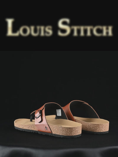 - The LOUIS STITCH Exclusive Collection of Men's Open Footwear presents this thong sandal, crafted with a cork and EVA sole to deliver exceptional comfort and style.