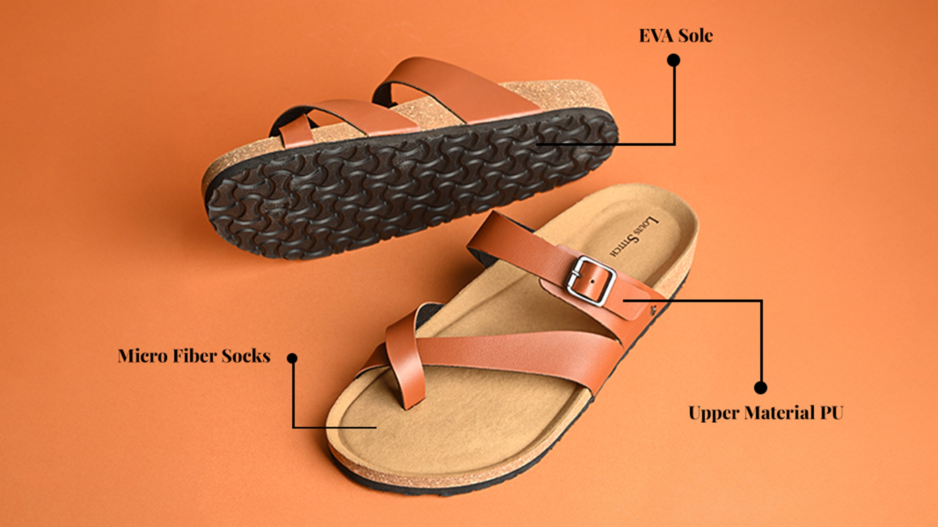 - The LOUIS STITCH Exclusive Collection of Men's Open Footwear presents this open toe ring sandal, crafted with a cork and EVA sole to deliver exceptional comfort and style.
