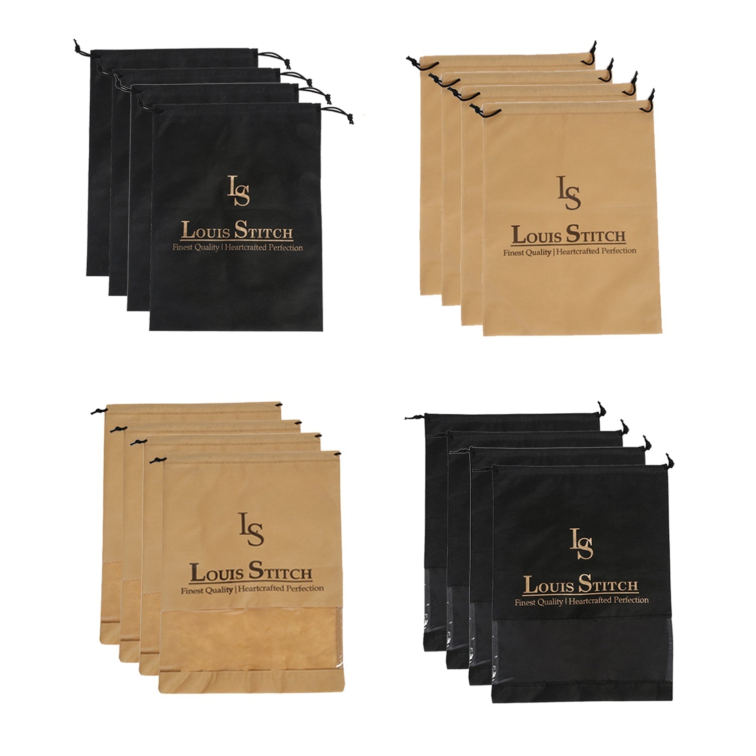 This pack of Non-woven Shoe Bags is a great way to carry your essential items in style. It is labeled as a shoe bag, but it really is a handy carrier for so many other things. It can be your make-up bag, toiletry bag, bag for gym accessories, etc. It is a convenient bag to buy for multi-dimensional usage. Its material is breathable and odor-proof, making it a safe bag to carry your shoes and other essential items in. It can fit footwear of all types including shoes, sandals, slippers, crocs, flip-flops, sneakers, hiking shoes, etc. This set comes in multiple combos of Shoe Bags, giving you plenty of options for when you have to move items in bulk.