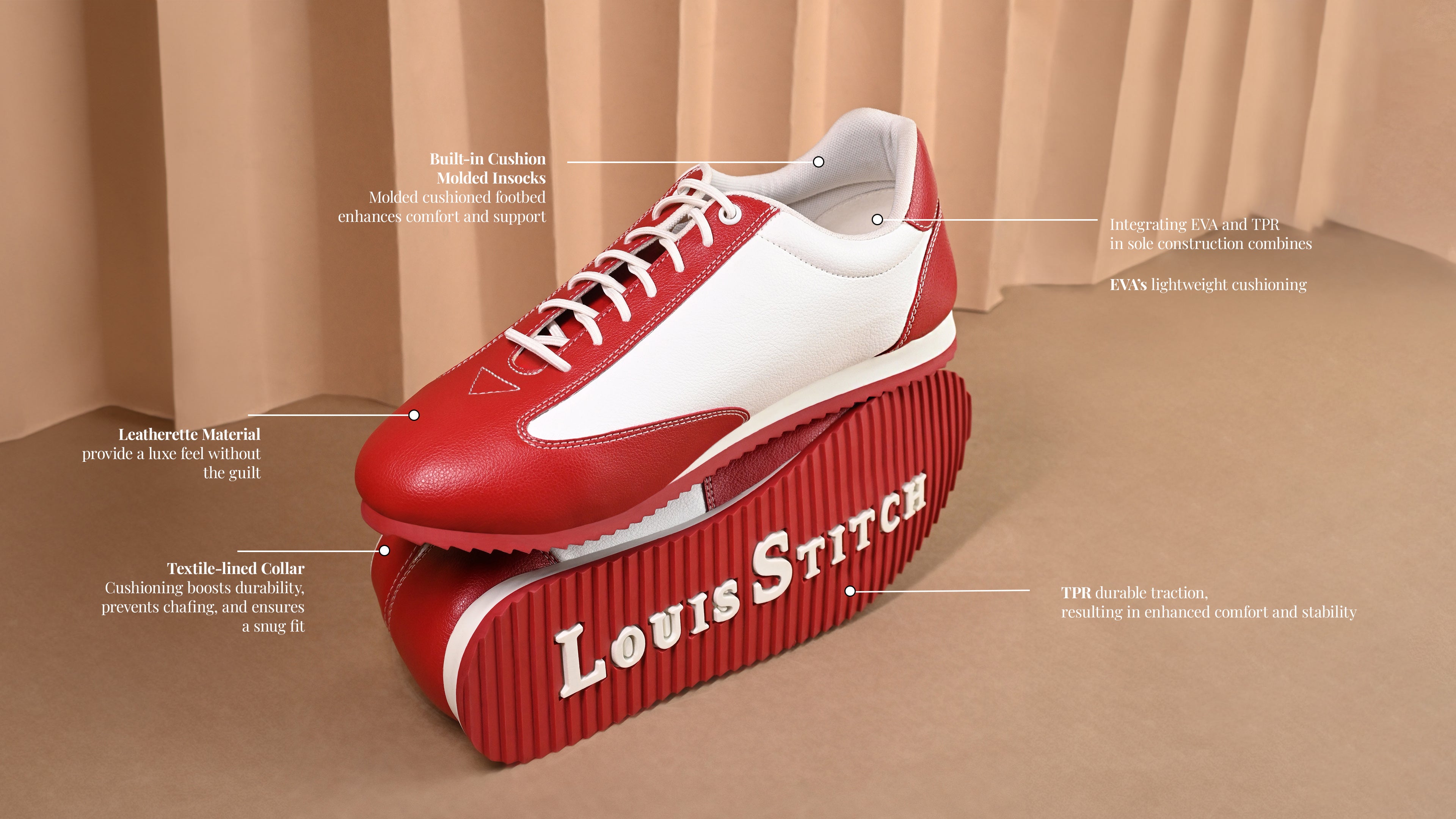 The LOUIS STITCH Sneakers take their inspiration from the dynamic rhythm of playful urban life. Heartcrafted with utmost perfection, these sneakers feature comfortable yet stylish and modern silhouette, bold branding, and ensuring that every step is a celebration of joyful living.