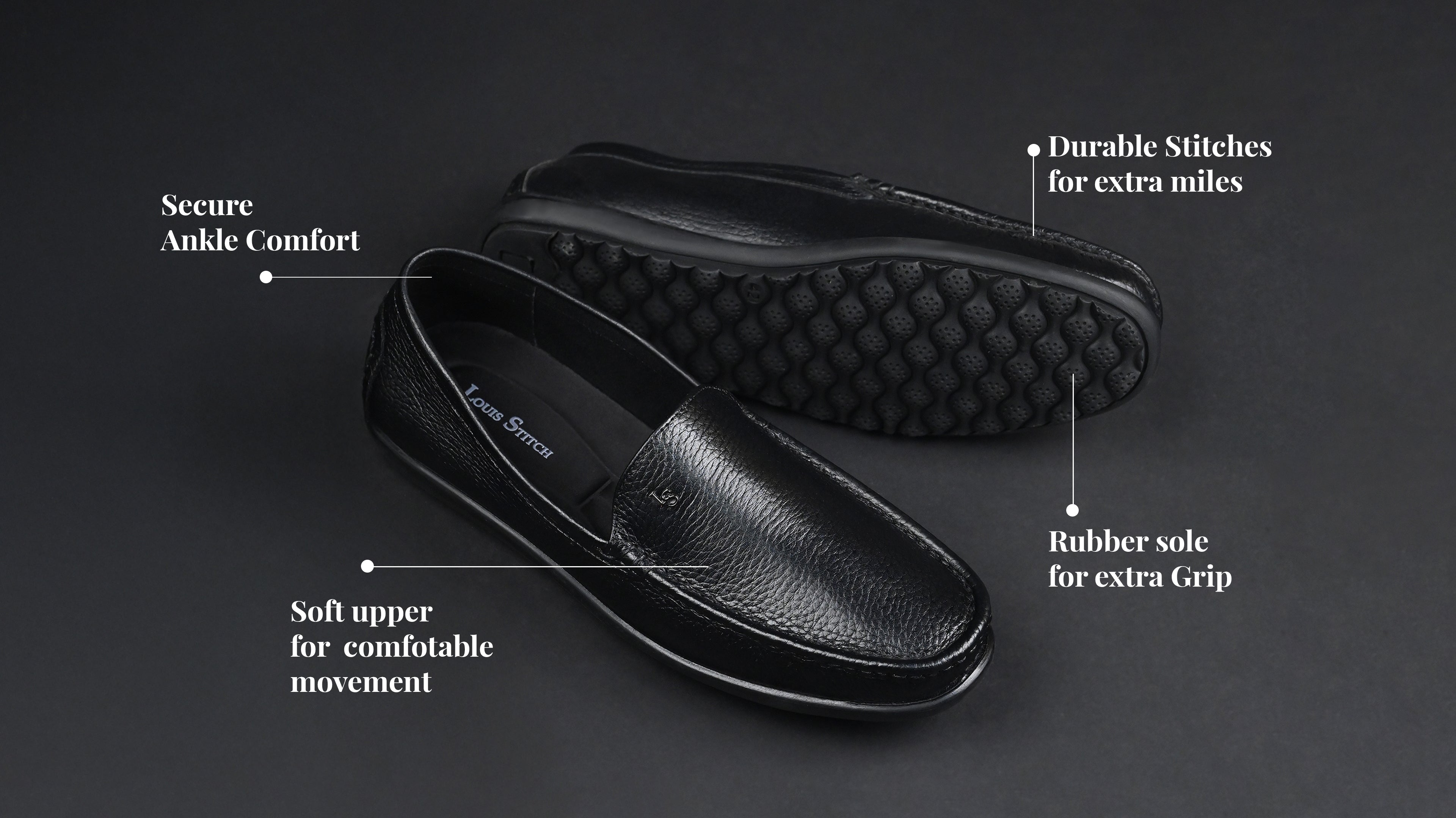 - The LOUIS STITCH Exclusive Collection of Men's Formal Loafer Shoes presents this premium leather formal shoes, crafted Rubber sole to deliver exceptional comfort and style.