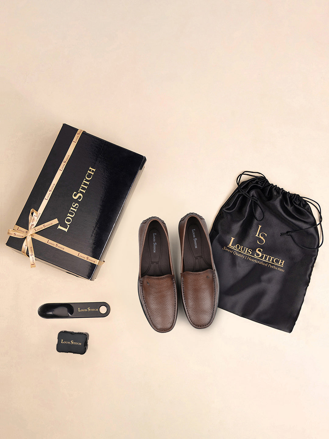 Louis Stitch's signature packaging, elegantly designed in Black, is wrapped with a refined golden and black ribbon. Please note, images are for representation purposes only