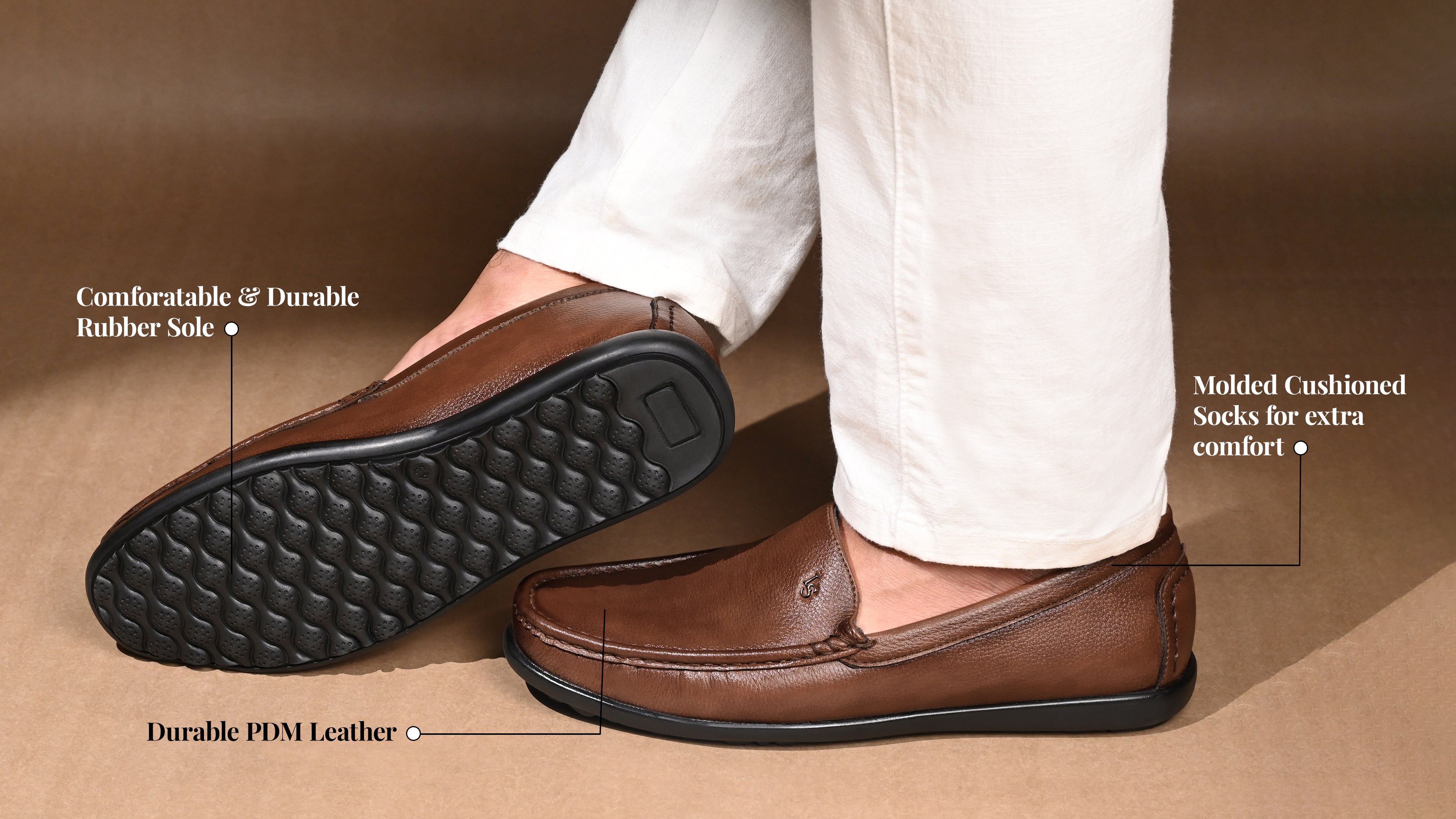 - These Tan formal loafers for men are ideal for long periods of standing or walking, providing superior comfort with their built-in moulded cushioned sock technology.