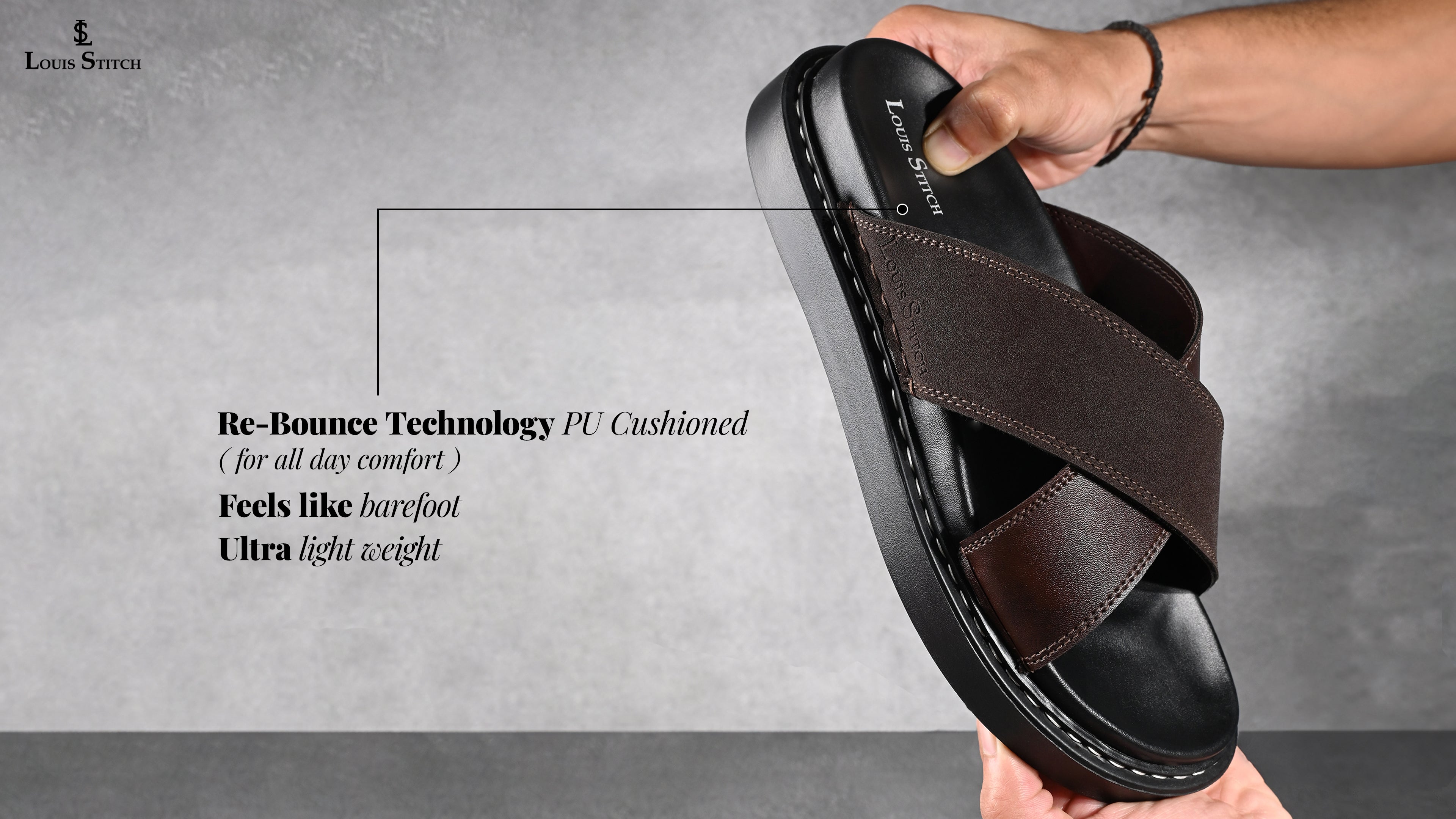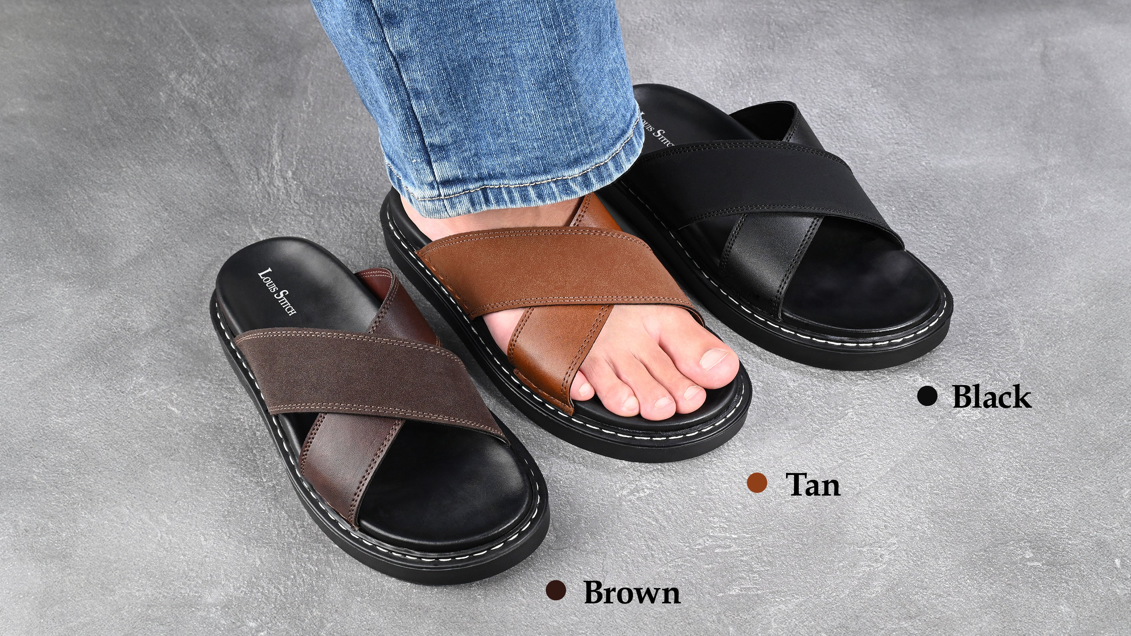 The LOUIS STITCH Exclusive Collection of Men’s Open Footwear introduces these sandals, crafted with a cross-strap design that blends comfort, durability, and style. Made with a Finest material and PU sole, these lightweight sandals offer flexibility, long-lasting wear, and dependable support. The cushioned comfort footbed provides superior ease for everyday use, while the open-toe design enhances breathability. Featuring stylish side stitching for a premium look, these sandals are also designed to accommodate broad feet, ensuring a relaxed and secure fit. Perfect for daily wear, they combine practicality with elegance, making them suitable for casual outings, home use, or office wear.