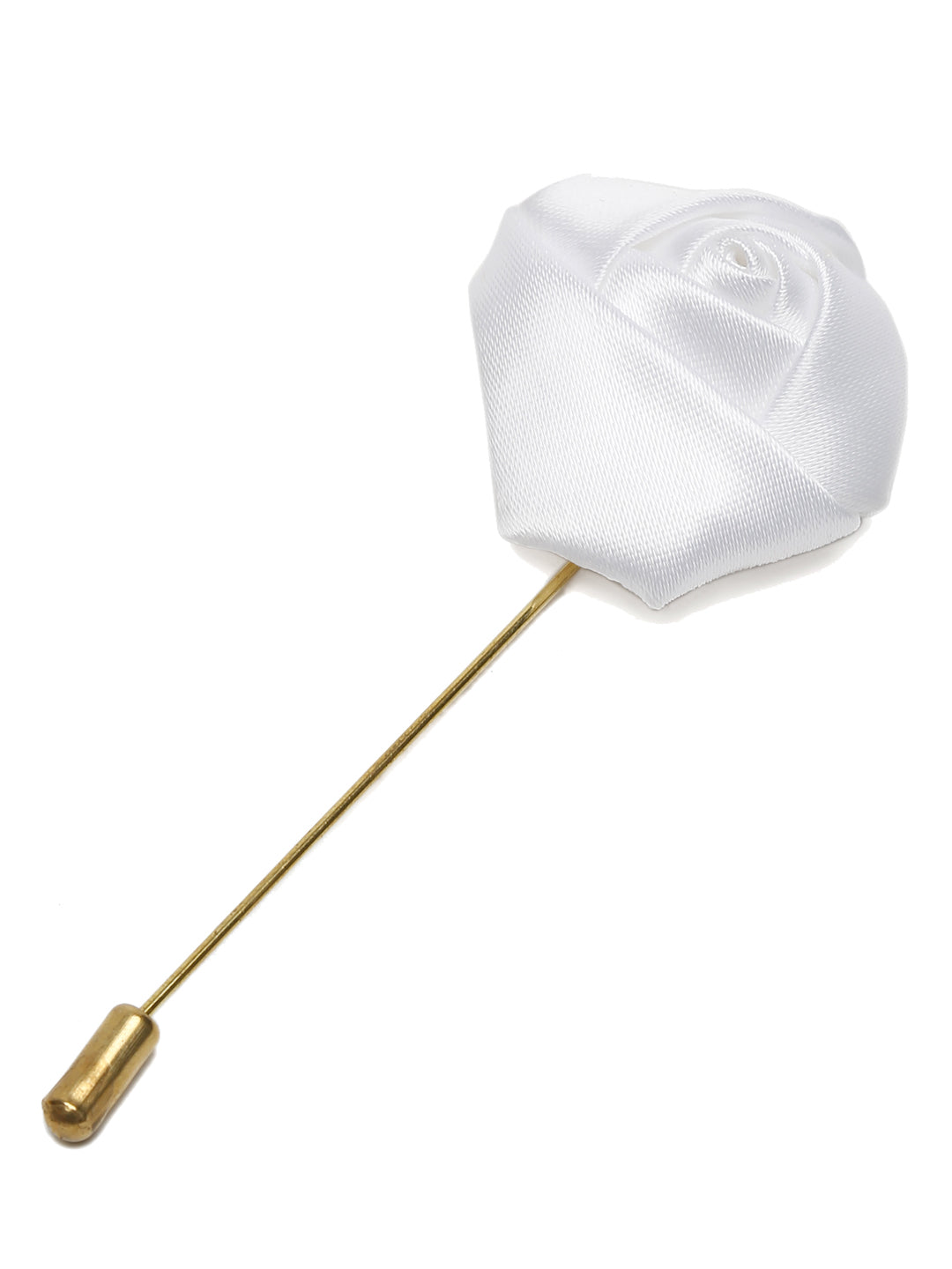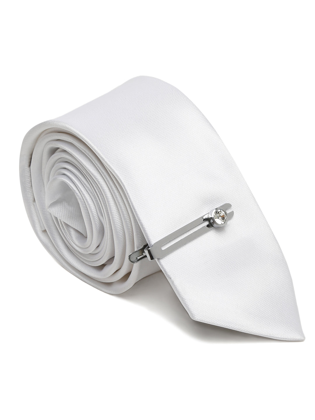 White Luxury Italian Silk Necktie Set With Pocket Square Cufflinks Brooch Chrome Tie pin