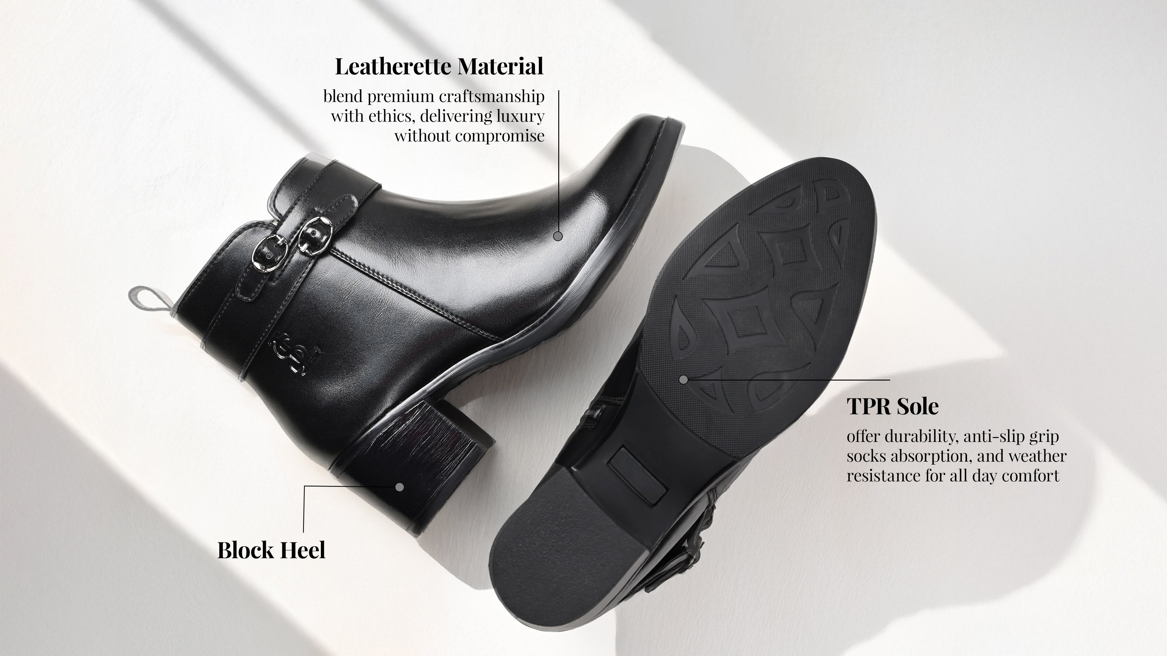 The LOUIS STITCH Exclusive Collection of Women’s Mid-Top Ankle Chelsea Boots combines premium craftsmanship with modern style, offering unmatched comfort and durability. Made with a high-quality PU upper, these boots ensure a long-lasting, elegant look. Featuring a chic neck belt double buckle design, these boots blend sophistication with trend-setting fashion, making them a versatile choice for casual outings, office wear, or evening gatherings. The TPR sole delivers stability and reliable grip, ensuring a confident stride on every surface.