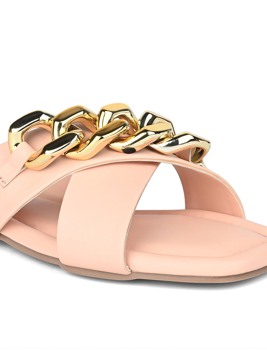 Women's Peach Flat Heel Cross Strap Buckle Sandals