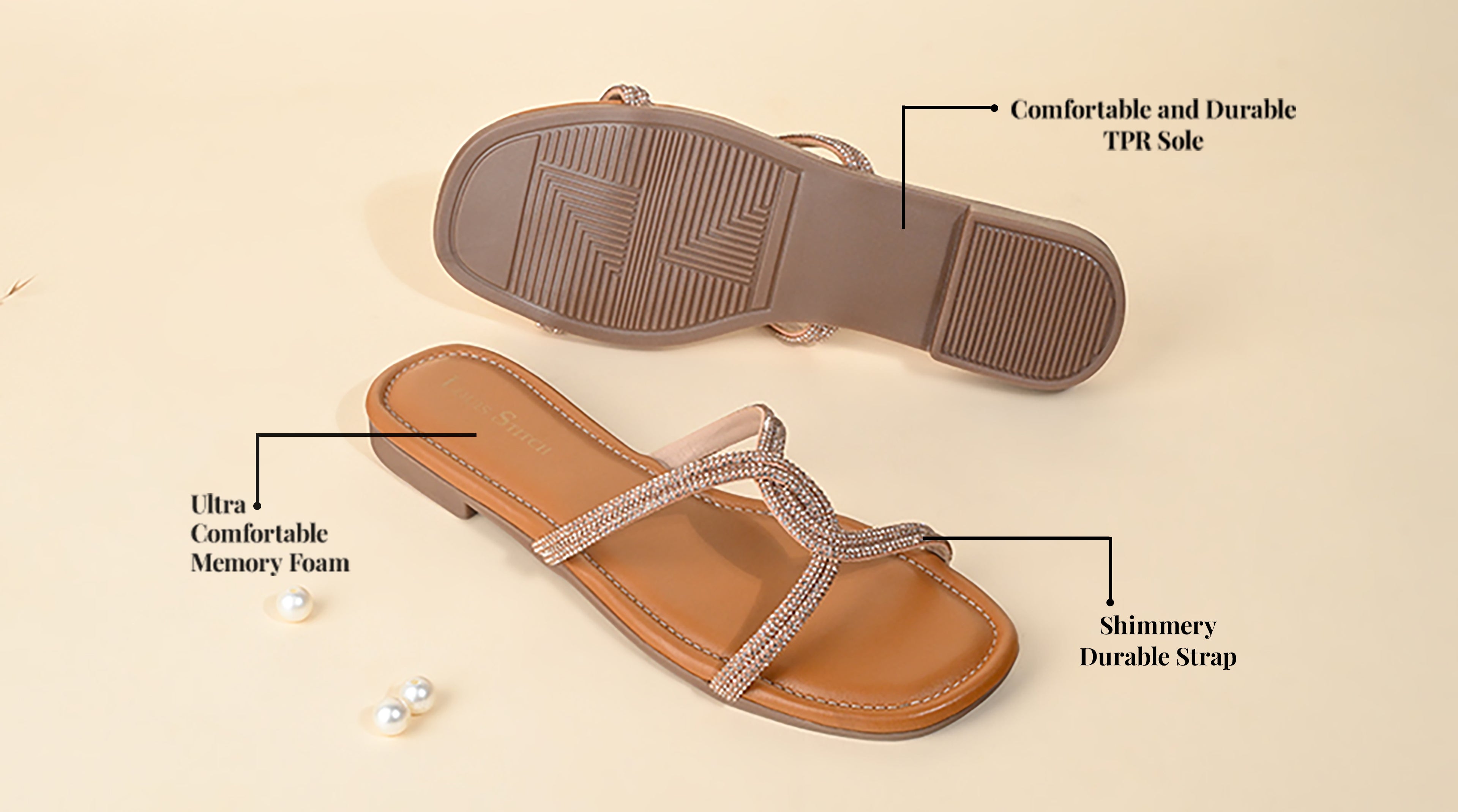 Perfect for any Occasion: This Shiny Cross Strap Flat Sandal with slip on feature is a perfect fit for party wear, office wear, getaway.